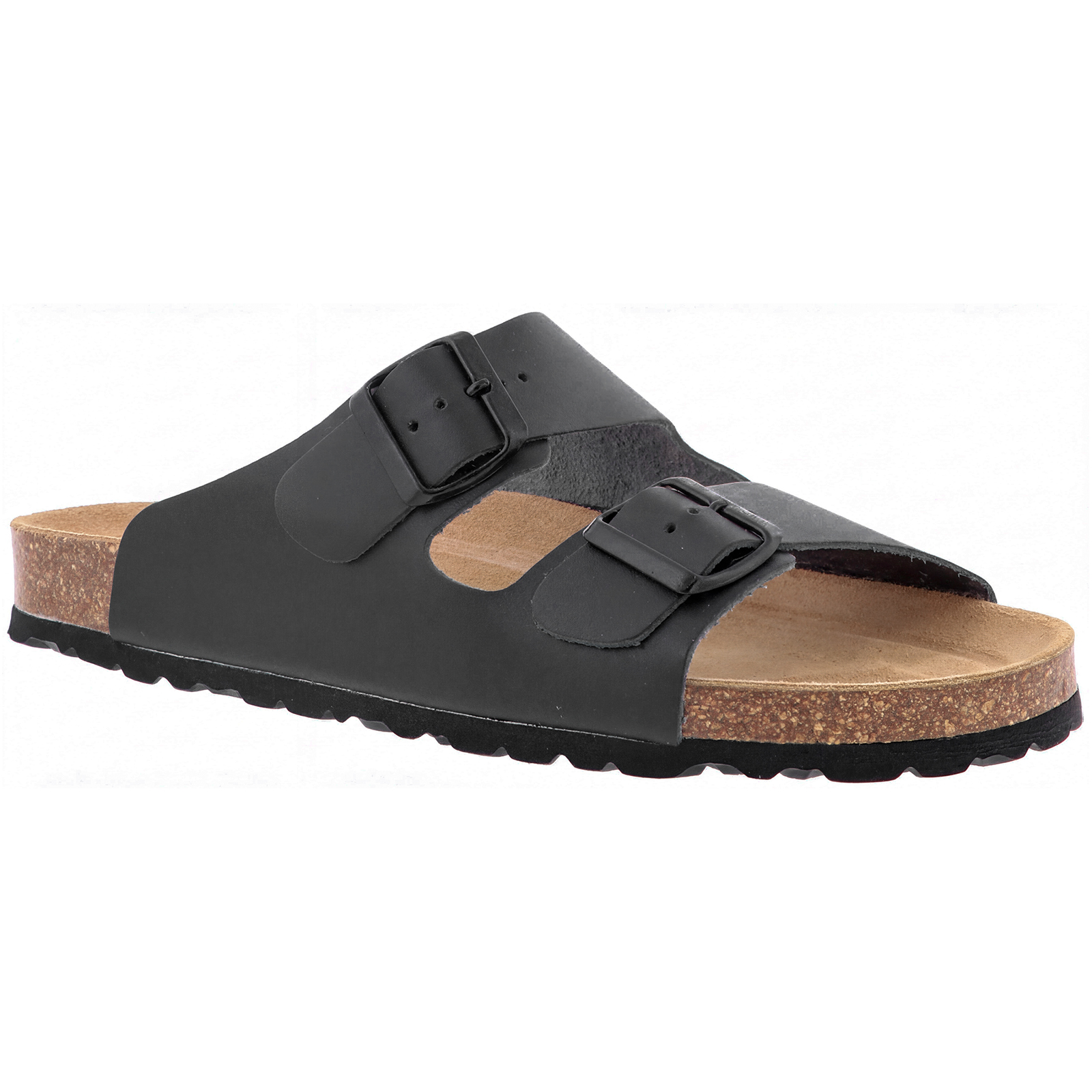 Bioline Leder-Pantoletten in breiter Form schwarz