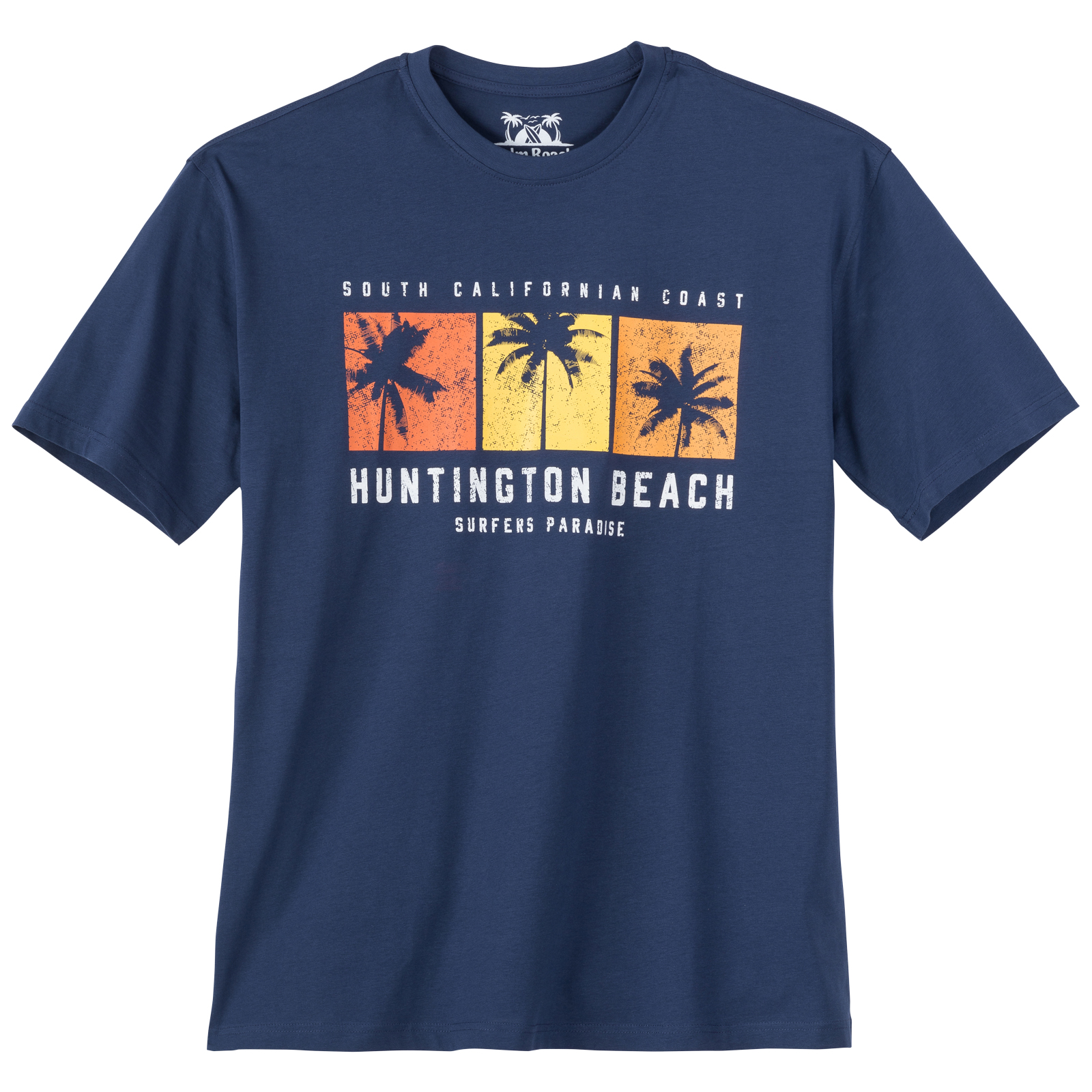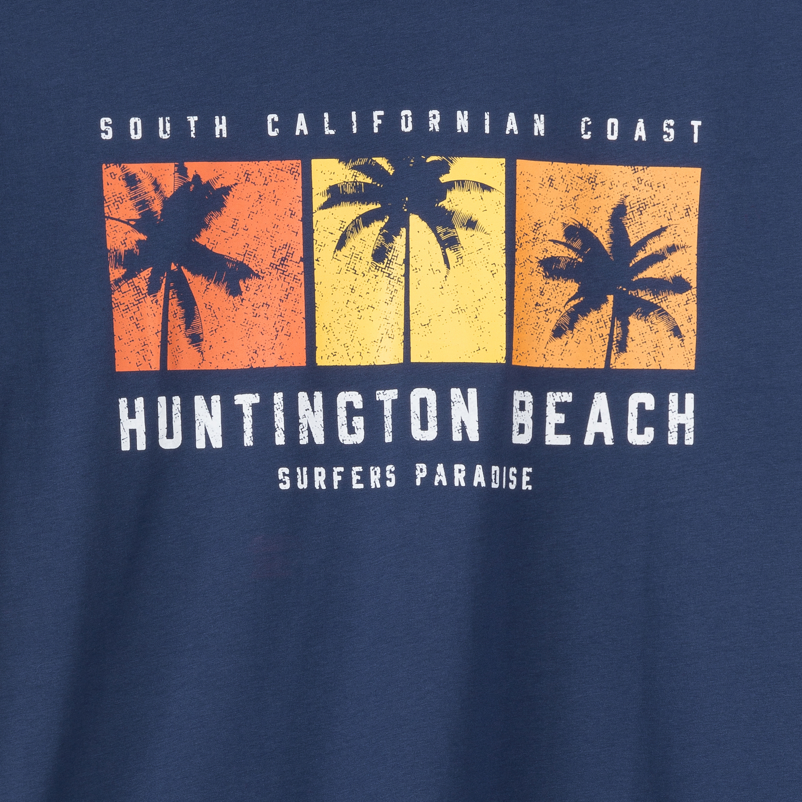 Calm Beach T-Shirt denimblau mit Palmenprint - Modell: Huntington Beach
