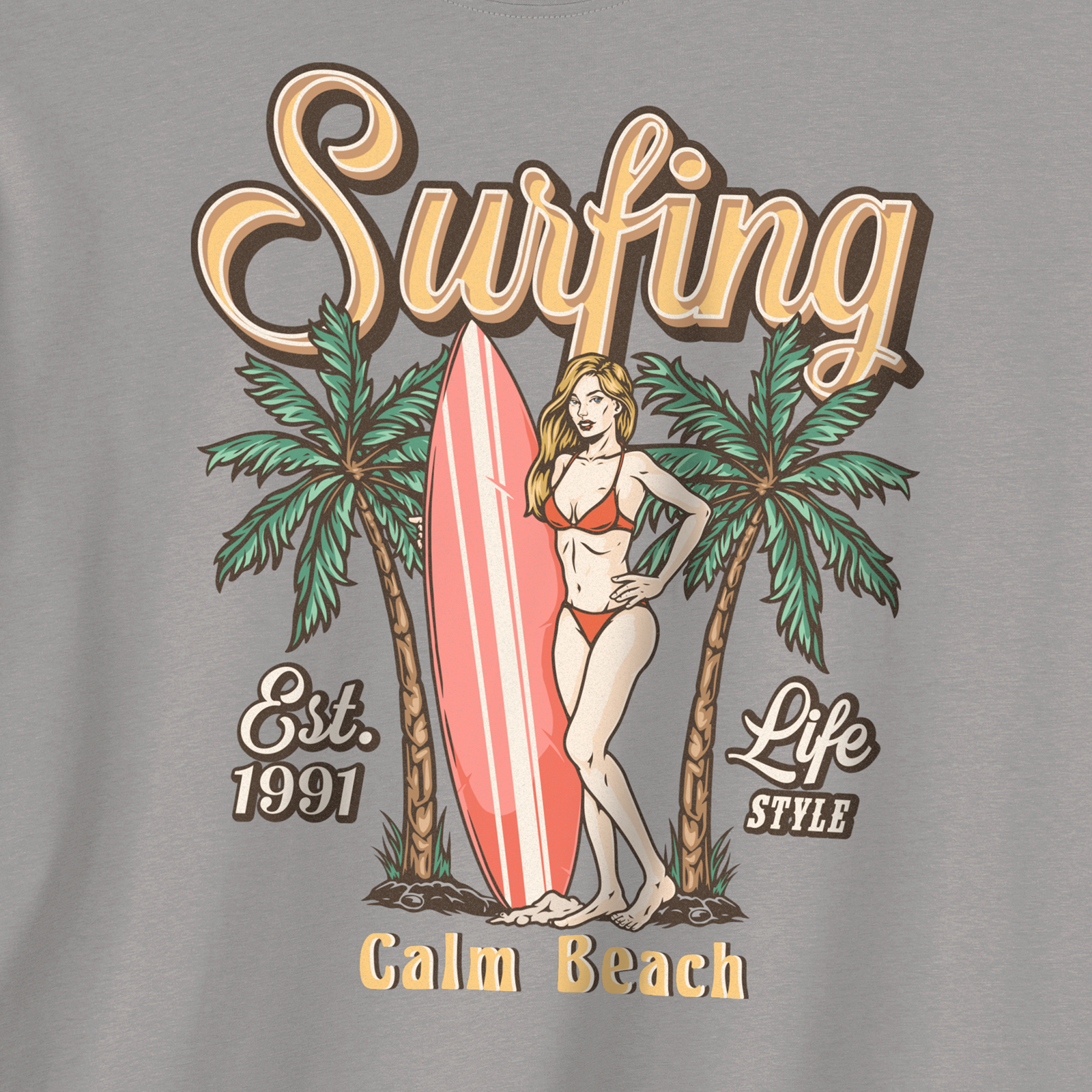 Calm Beach T-Shirt grau mit Pin-up-Girl Print