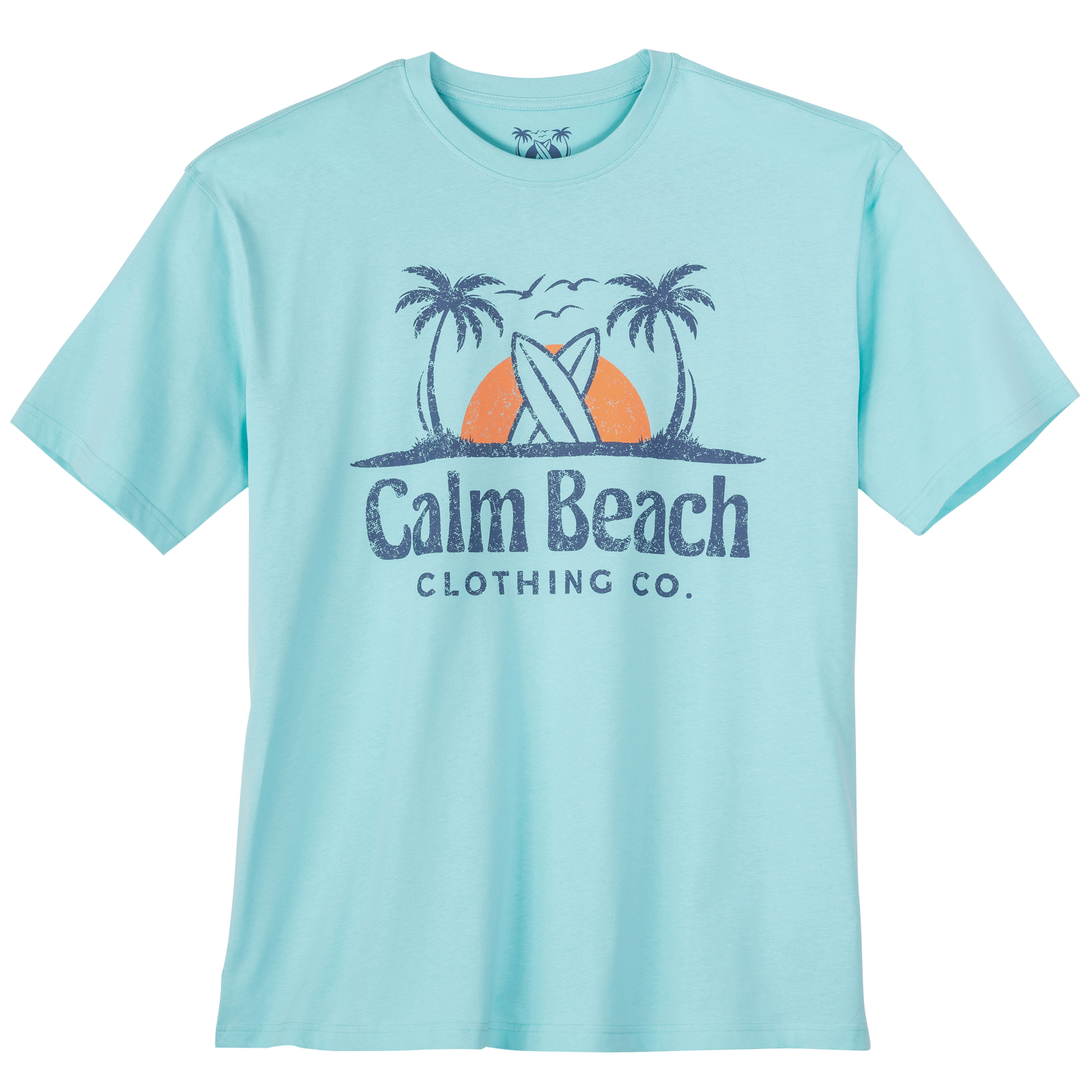 Mit diesem große Größen T-Shirt von Calm Beach holen Sie sich das Sommer-Feeling ganze Jahr über nach Hause! Die komfortable Passform und das Material aus reiner, soften Baumwolle sorgen für hohen Tragekomfort. Der elastische Rundhalsausschnitt bietet einen angenehmen Sitz im Hals- und Nackenbereich und erleichtert das An. und Ausziehen. Zudem lässt sich das Shirt problemlos mit Jeans oder Shorts und Sneakern kombinieren.