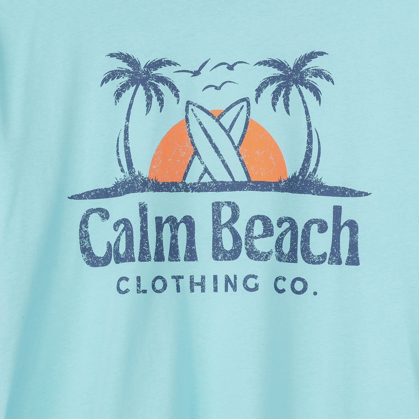 Calm Beach T-Shirt türkis mit sommerlichem Logoprint