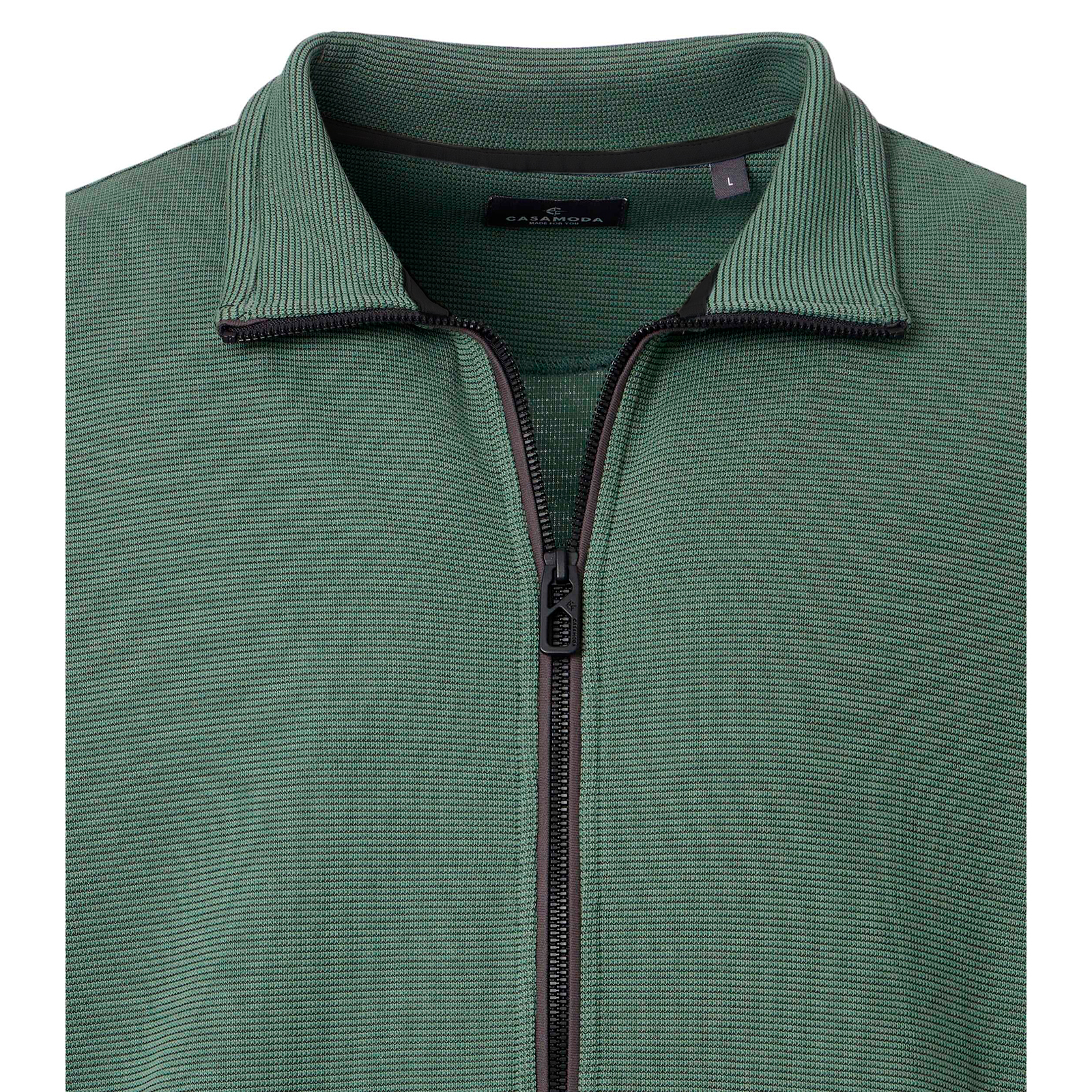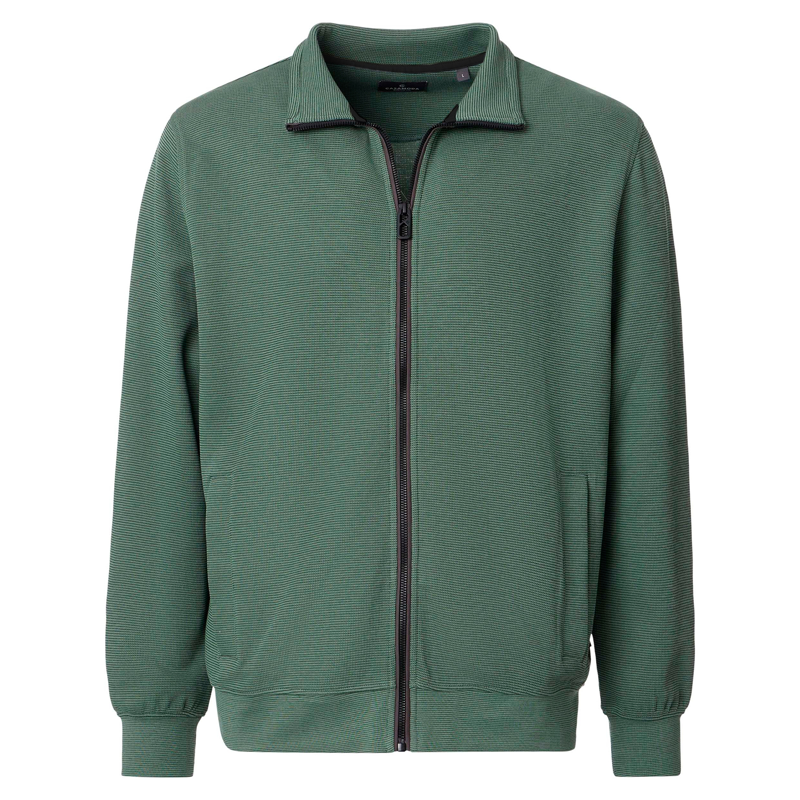 Mit dieser Sweatjacke in großen Größen von CasaModa entscheiden Sie sich für einen vielseitig kombinierbaren Klassiker! Der bequeme Schnitt sorgt für eine angenehme Passform, während die hochwertige Baumwollmischung mit Polyester-Anteil ihre Form dauerhaft bewahrt. Das strukturierte Material verleiht der Jacke eine besondere Optik, ergänzt durch praktische Einschubtaschen und einen durchgehenden Reißverschluss auf der Vorderseite. Elastische Rippbündchen an Kragen, Saum und den Ärmeln runden das Ganze ab.