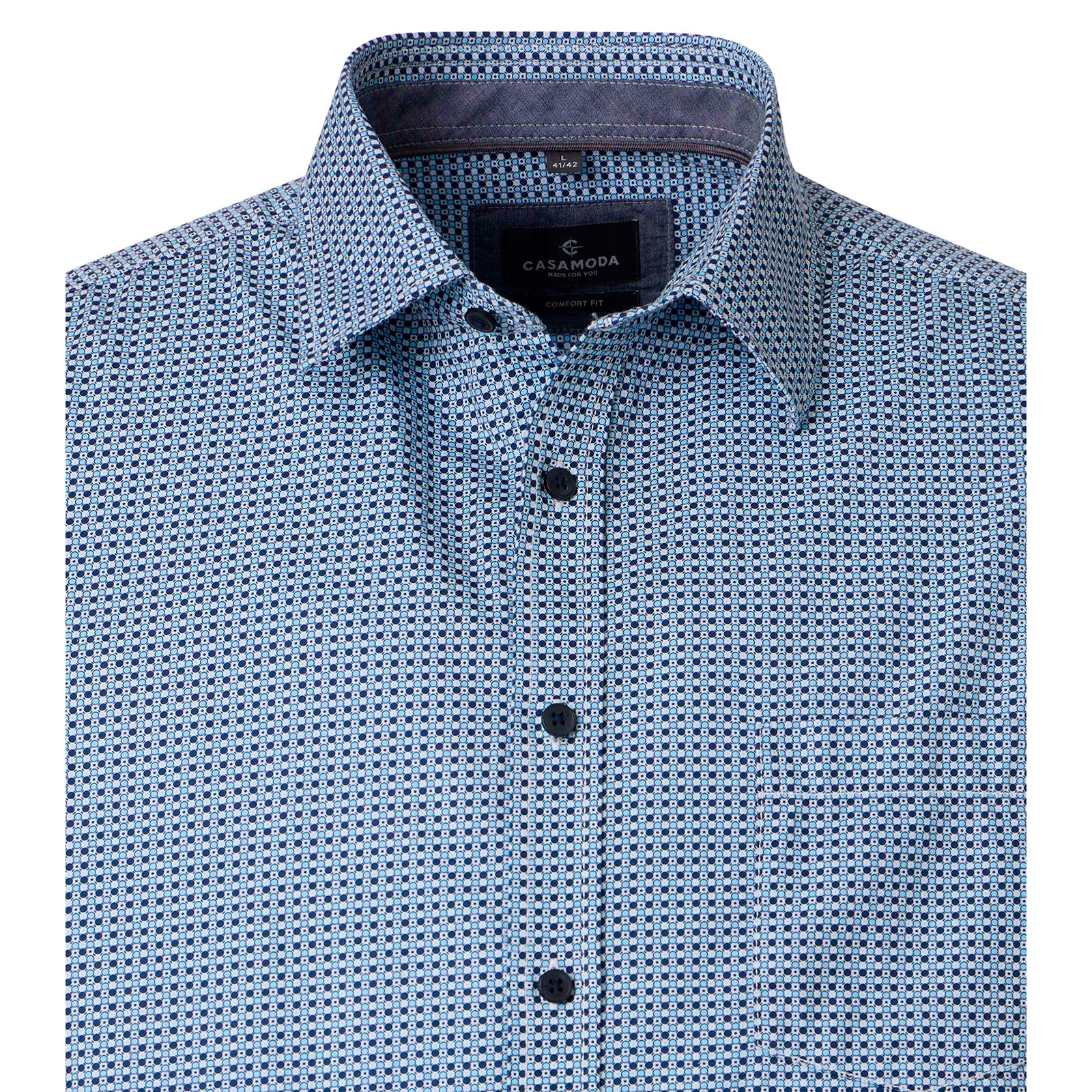 CasaModa Kurzarmhemd blau-weiß mit modischem Allovermuster