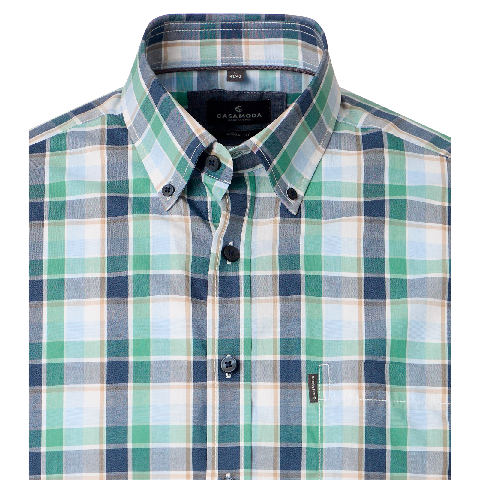 CasaModa Kurzarmhemd grün-blau-beige kariert