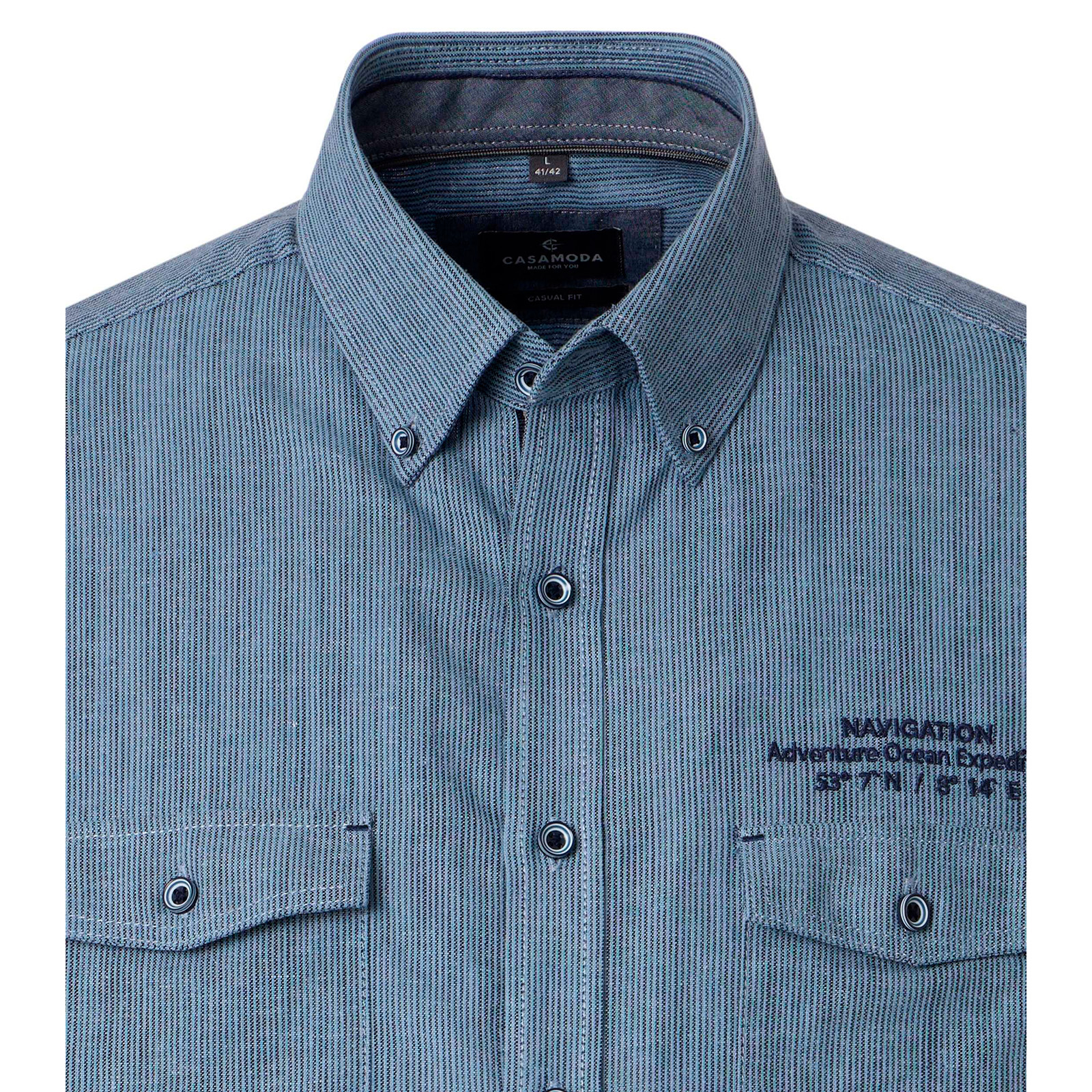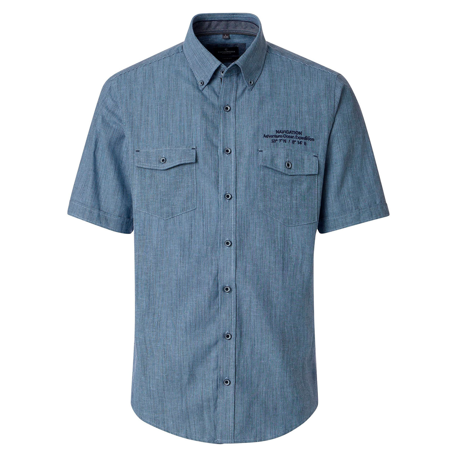 CasaModa Kurzarmhemd mit Leinenanteil rauchblau fein gestreift