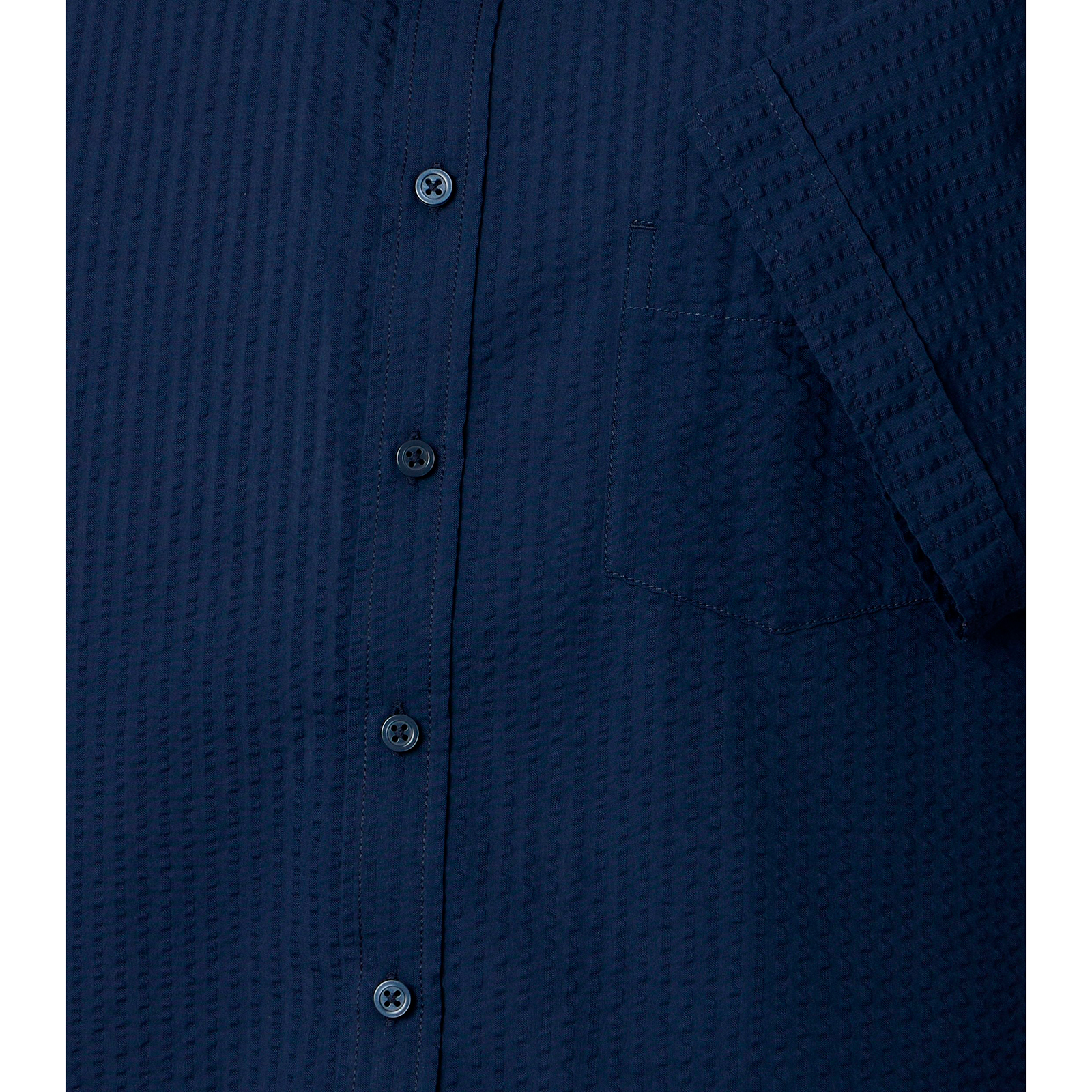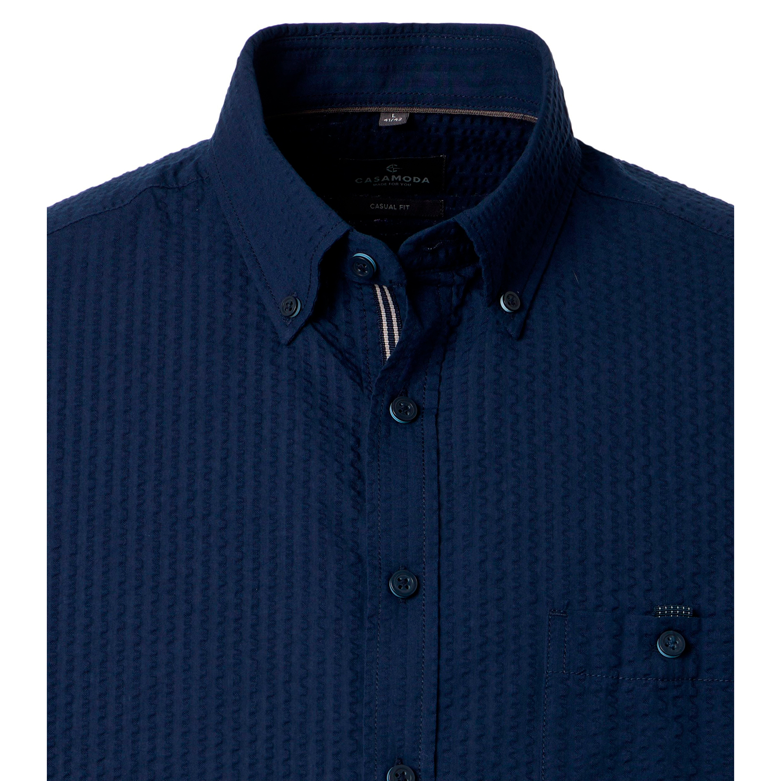Dieses Kurzarmhemd in Übergrößen von CasaModa überzeugt mit einer klaren, zeitlosen Optik und sommerlich-leichtem Tragekomfort. Die reine Seersucker-Baumwoll-Qualität mit leicht gewellter Struktur liegt angenehm auf der Haut, ist atmungsaktiv und sorgt auch an warmen Tagen für ein luftiges, komfortables Tragegefühl. Der klassische Button-down-Kragen verleiht dem Hemd eine sportiv-gepflegte Note, während die aufgesetzte Brusttasche mit Knopf das Design funktional abrundet. Vielseitig kombinierbar mit Jeans, Chino oder Shorts - ein unkomplizierter Sommerbegleiter mit Stil.
