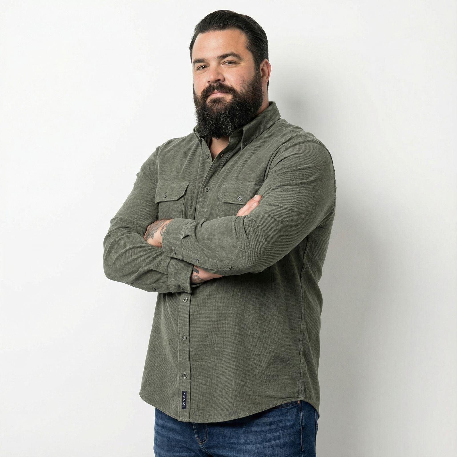 Cord-Langarmhemd Übergrößen oliv Struktur