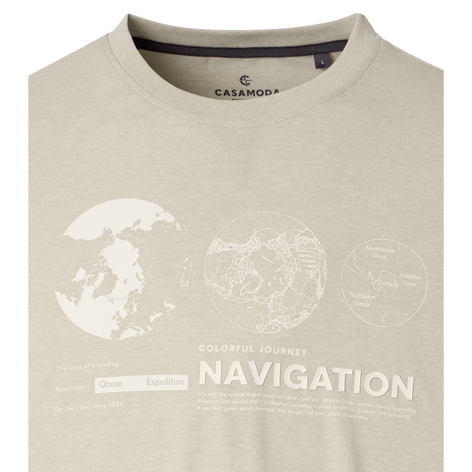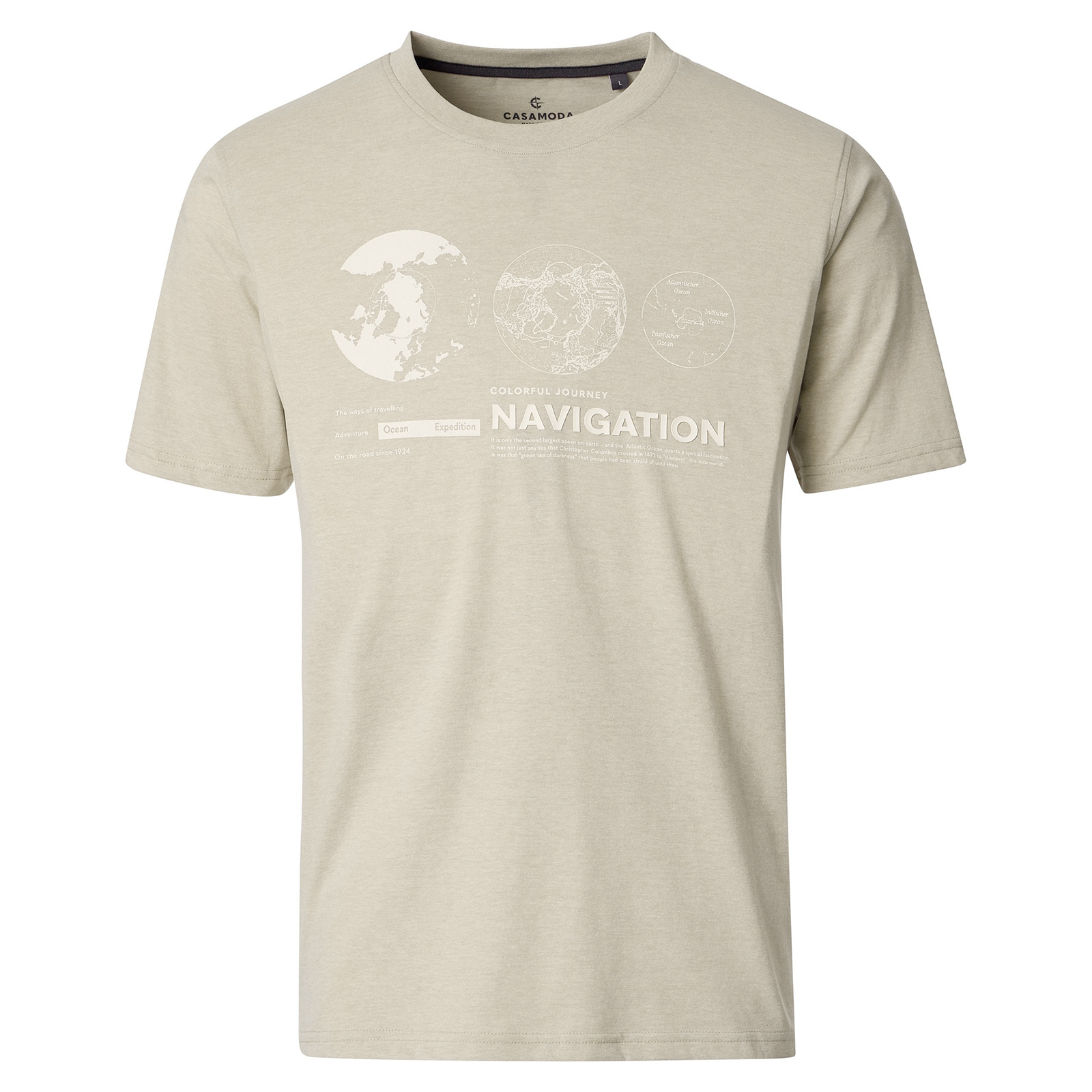 Dieses Übergrößen-T-Shirt von CasaModa überzeugt mit einem modernen Frontprint im Navigation-Style und verleiht dem Look eine lässige, zeitgemäße Note. Das grafische Motiv mit Karten- und Schrift-Elementen setzt einen dezenten, stilvollen Akzent und wirkt zugleich ruhig und hochwertig. Der klassische Rundhalsausschnitt, die bequeme Schnittführung und die angenehme Baumwollqualität sorgen für hohen Tragekomfort im Alltag. Vielseitig kombinierbar mit Jeans, Chino oder Shorts - ein unkompliziertes T-Shirt für entspannte Freizeitlooks in großen Größen.