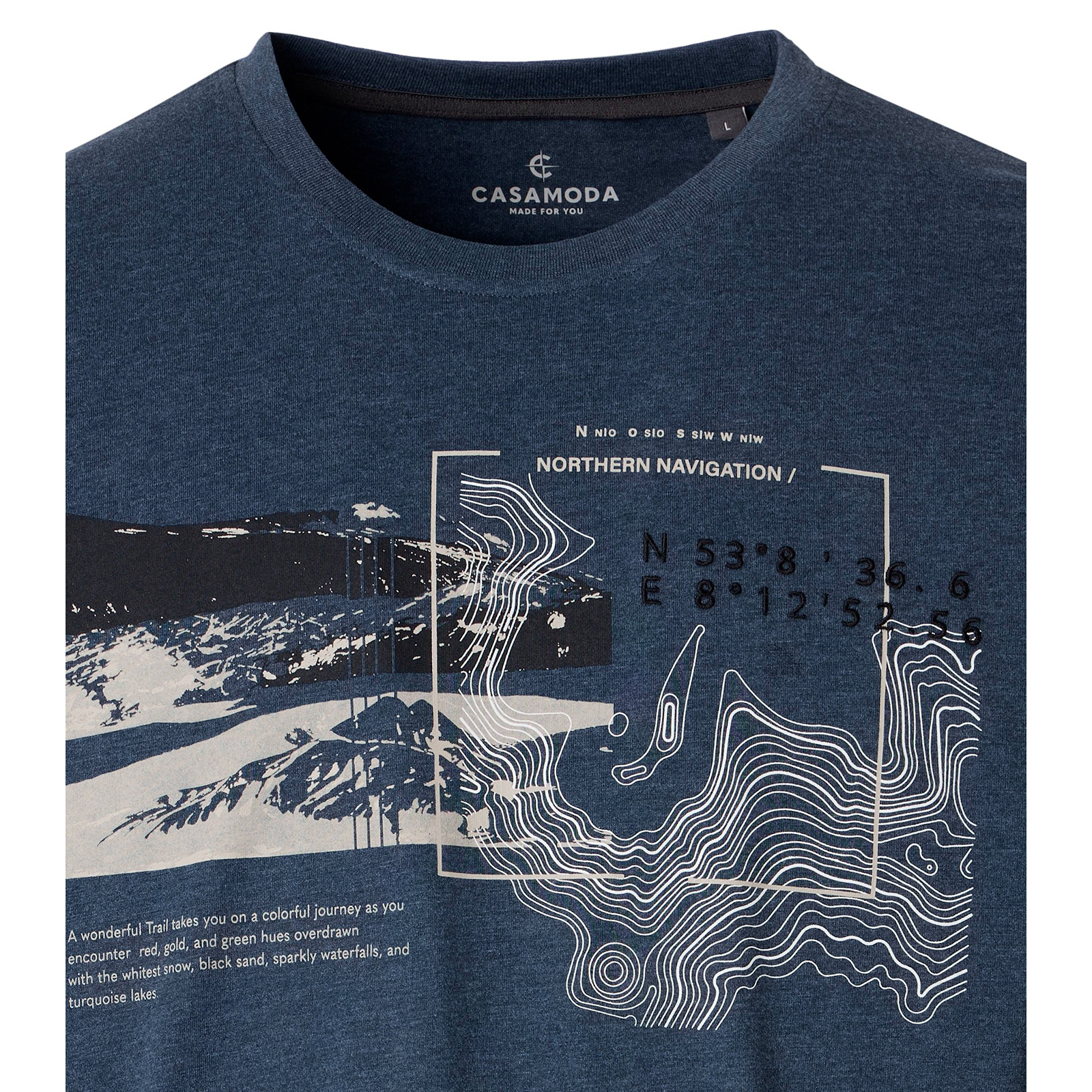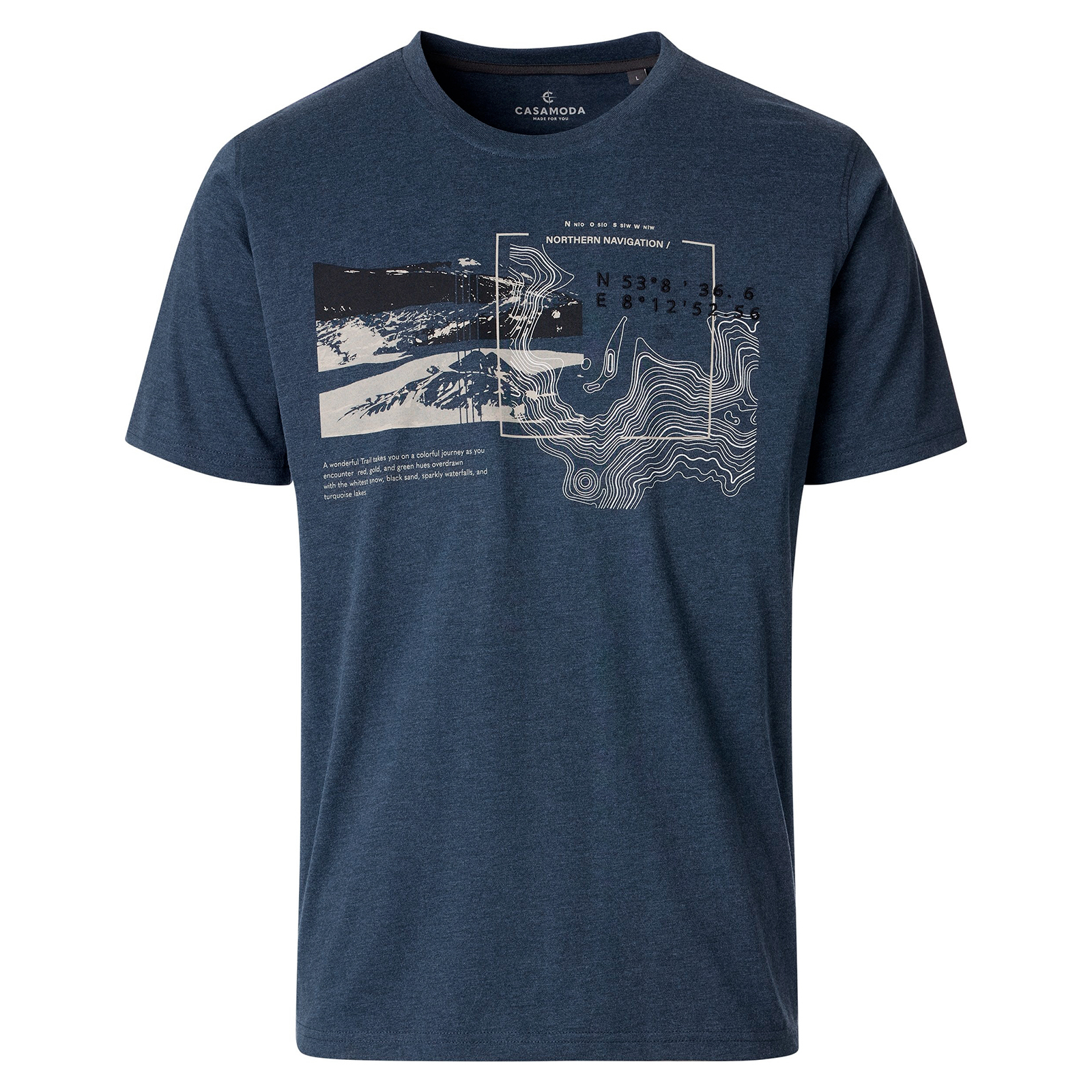 CasaModa T-Shirt blau melange mit modischem Frontprint