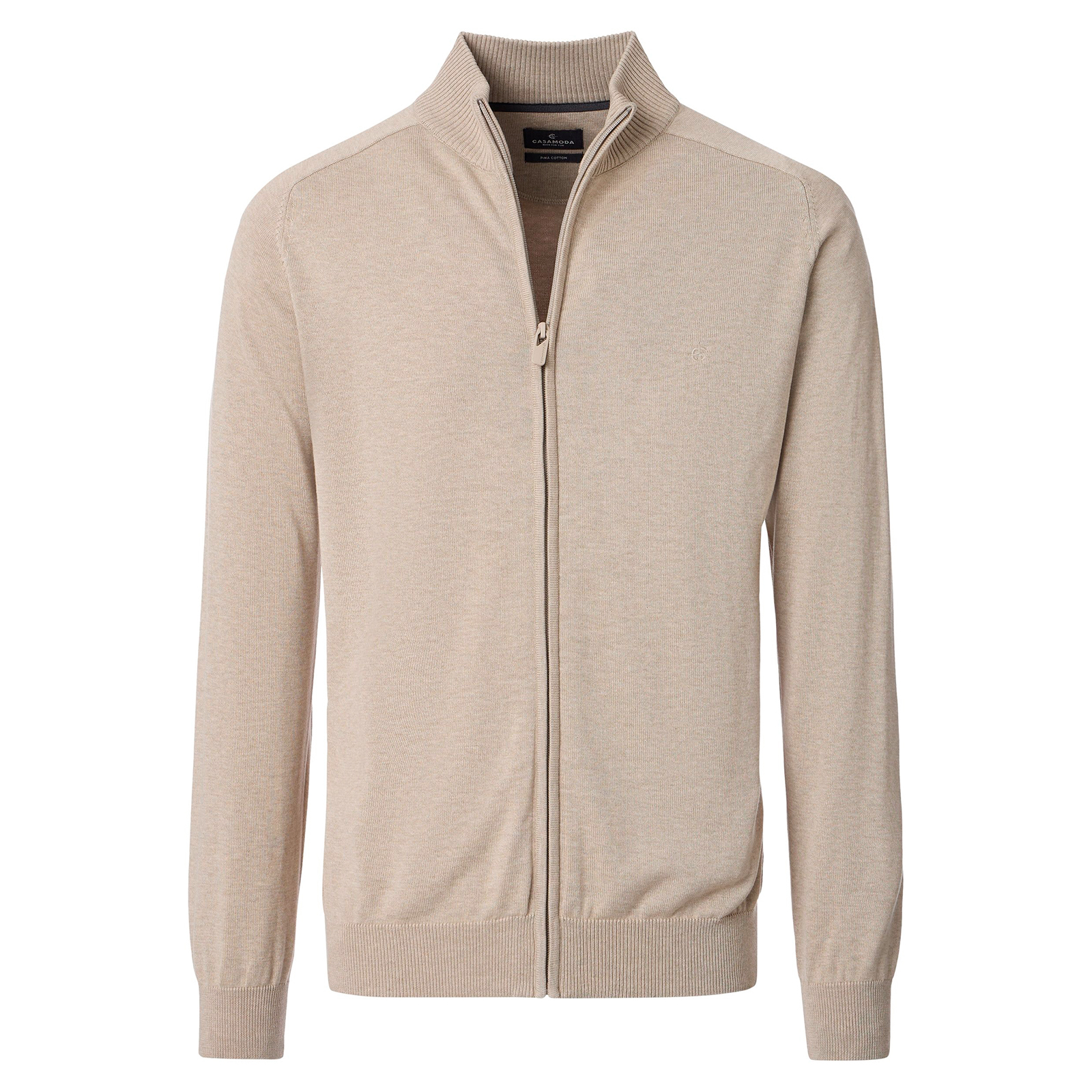 Ob für die Freizeit über einem T-Shirt oder fürs Business über einem Hemd – der XXL Cardigan der Marke CasaModa ist ein vielseitiger Kombipartner. Die gerade geschnittene Strickjacke mit verdecktem Reißverschluss ist aus hochwertiger, strapazierfähiger sowie besonders weicher Baumwolle (Pima Cotton) in Feinstrick-Qualität gefertigt. Für optimalen Sitz sorgen elastische Bündchen an den Armabschlüssen, am Stehkragen und am Saumabschluss.