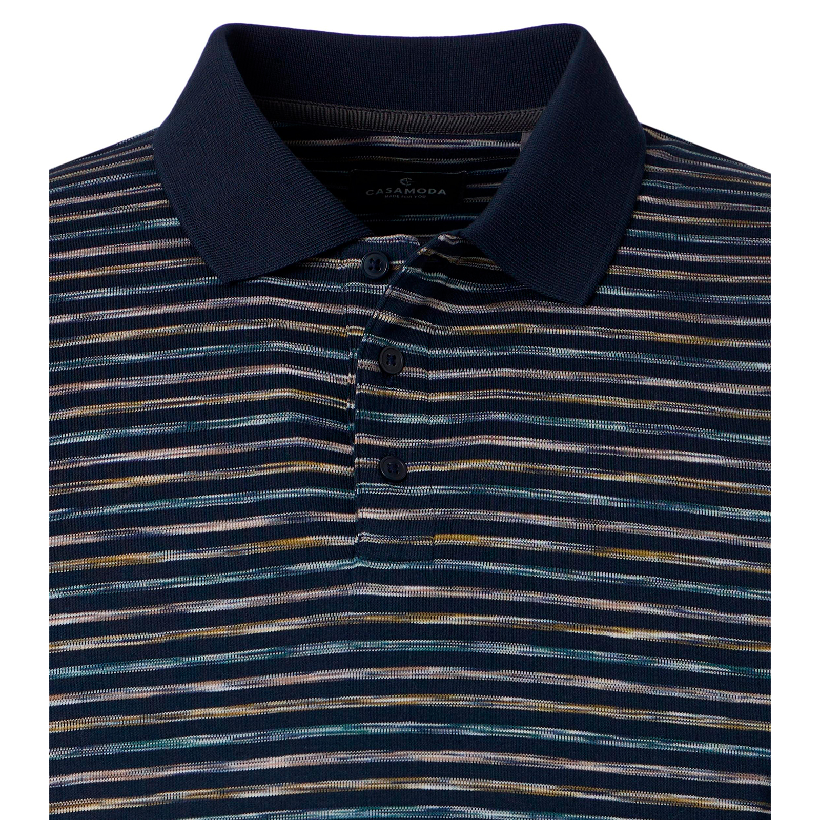 Dieses Poloshirt von CasaModa überzeugt als zeitloser Klassiker mit modernem Charakter. Das harmonische Streifenmuster verleiht dem Shirt eine sportliche Note und macht es vielseitig kombinierbar. Polokragen und Ärmelbündchen setzen sich unifarben in elastischer Rippqualität ab und unterstreichen den gepflegten Look. Die angenehme Baumwollmischung sorgt zusammen mit dem geraden Schnitt und kleinen, verstärkten Seitenschlitzen für hohen Tragekomfort und ein entspanntes Tragegefühl.