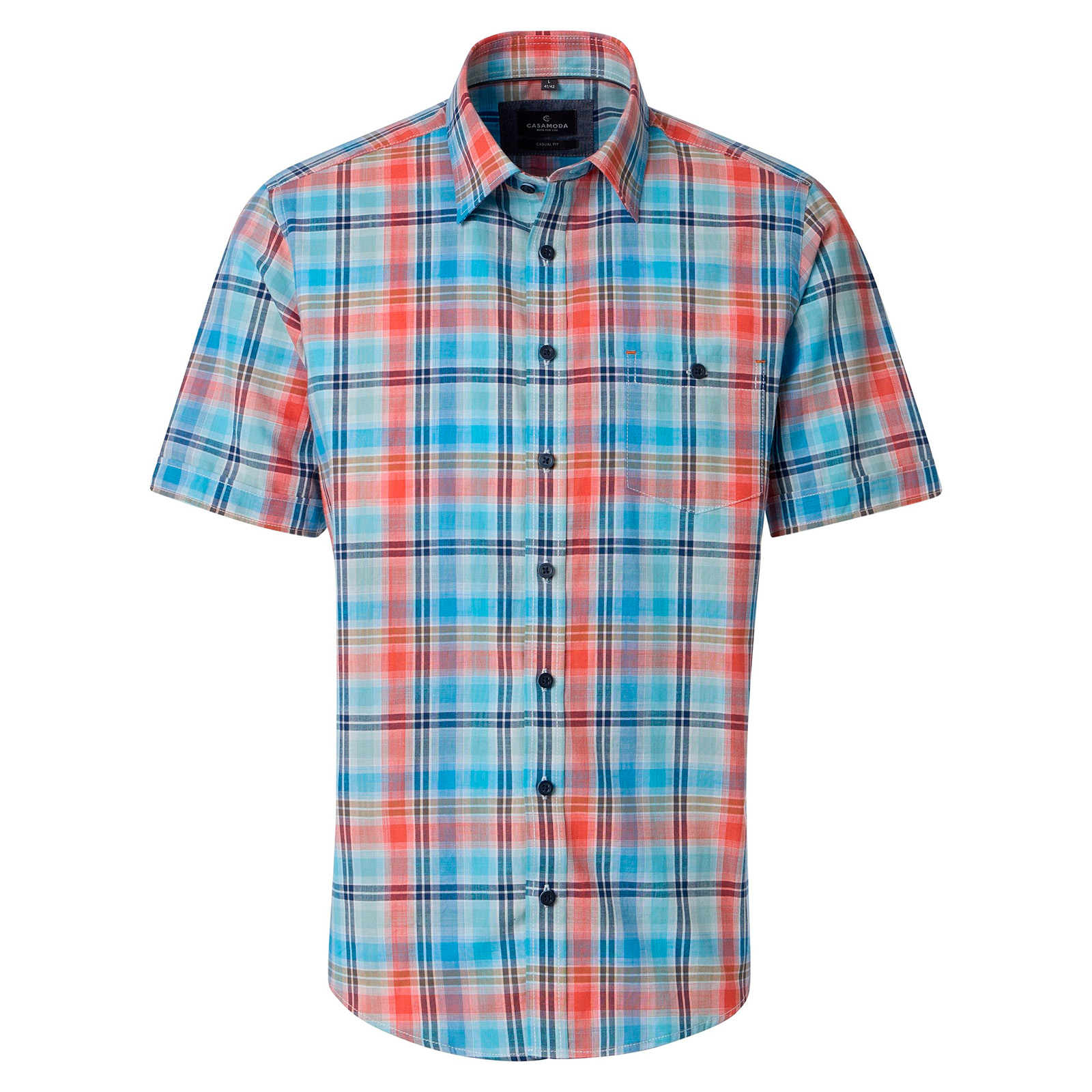 CasaModa kariertes Kurzarmhemd blau-terra-mint