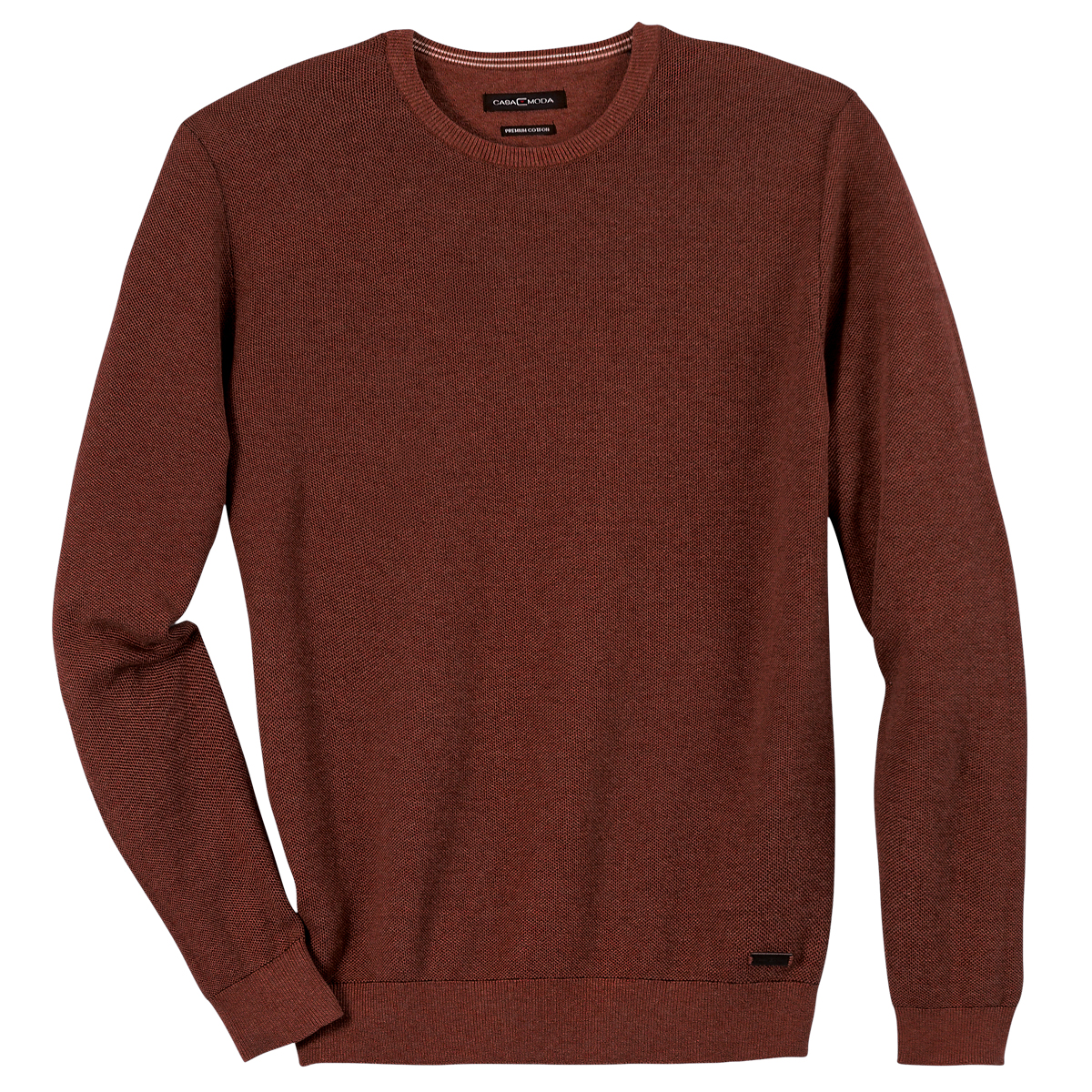 Durch das feine Wabenstruktur-Muster in Melange-Optik zeigt sich der Übergrößen Pullover der Marke CasaModa als topmodischer Herbstbegleiter zu Jeans & Chinos. Die Baumwollmischung bietet nicht nur lang anhaltende Farbbrillanz, sondern auch Formbeständigkeit und einen besonders weichen Griff. Dank der bequemen Passform mit elastischen Rippstrickbündchen an Rundhalsausschnitt, Ärmeln und Saum sitzt der Strickpullover sehr angenehm.