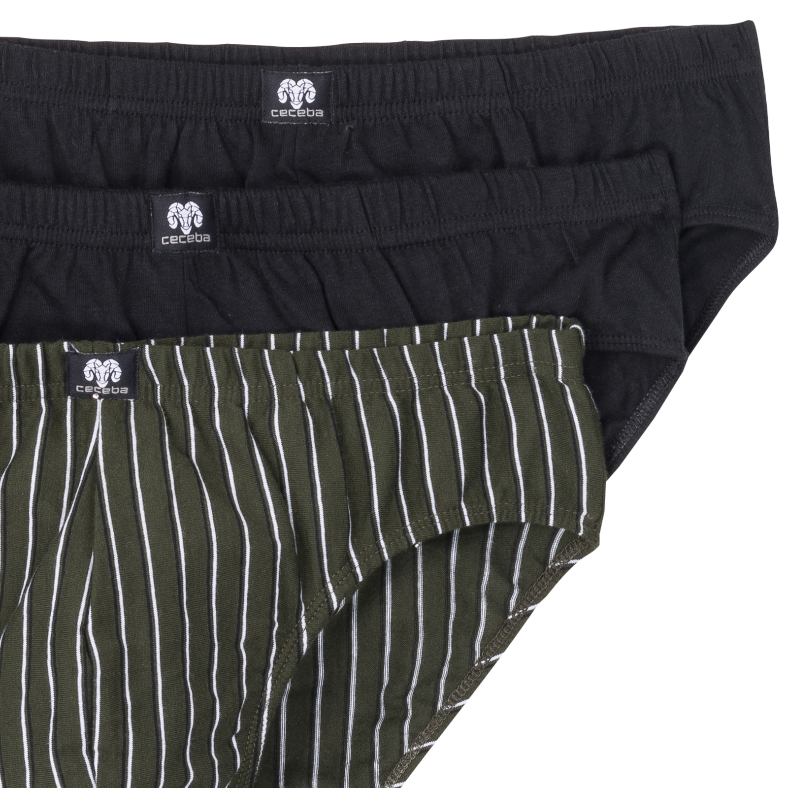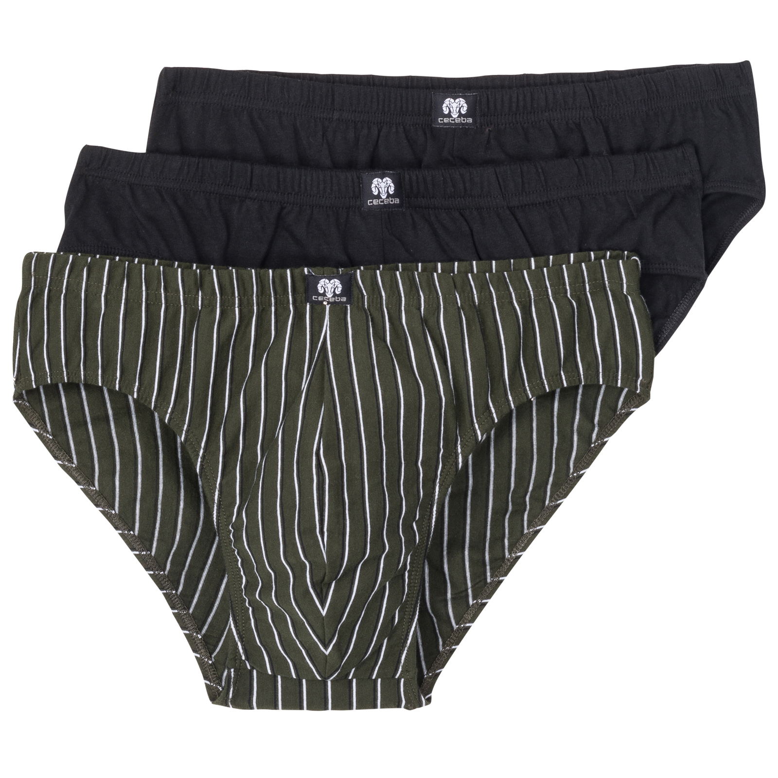 Ceceba 3er-Pack Slips oliv/schwarz gestreift
