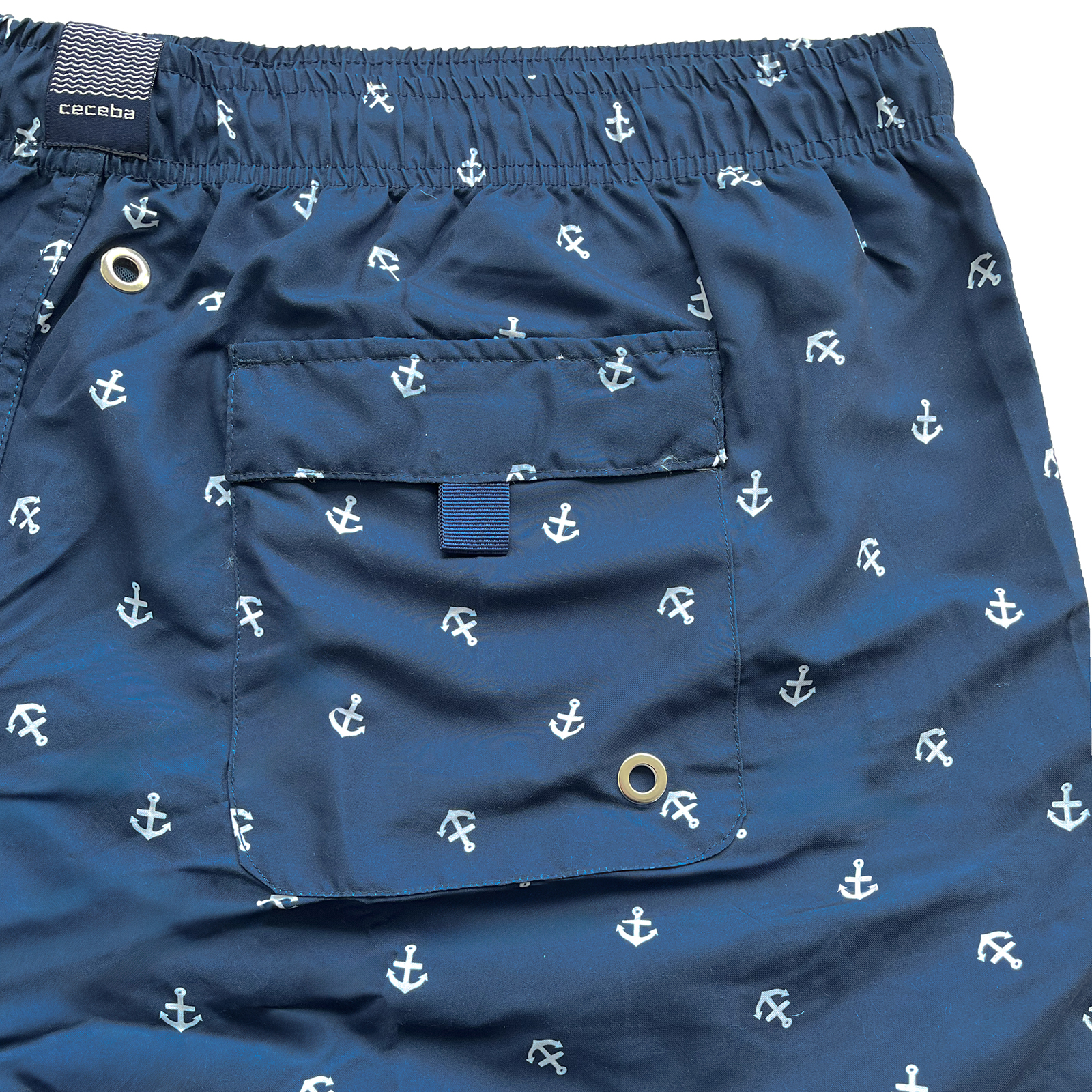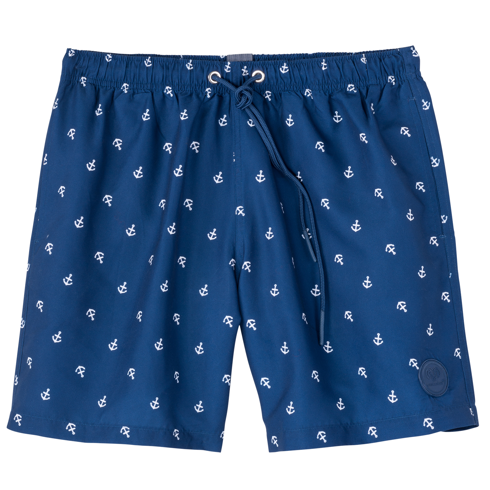Der angesagte Anker-Print auf diesen mittellangen Badeshorts in Übergrößen von Ceceba verleiht Ihnen den perfekten Look für den Strand! In puncto Tragekomfort überzeugen das schnelltrocknende Polyestermaterial, der Mesh-Innenslip, der elastische Bund mit Kordelzug und die beiden Ösen auf der Rückseite, die das Abfließen von Wasser ermöglichen und den „Ballon“-Effekt verhindern. Die seitlichen Eingrifftaschen, die Gesäßtasche mit Klettverschluss und die kleine Mesh-Innentasche schaffen ausreichend Stauraum für die Aufbewahrung kleiner Gegenstände.