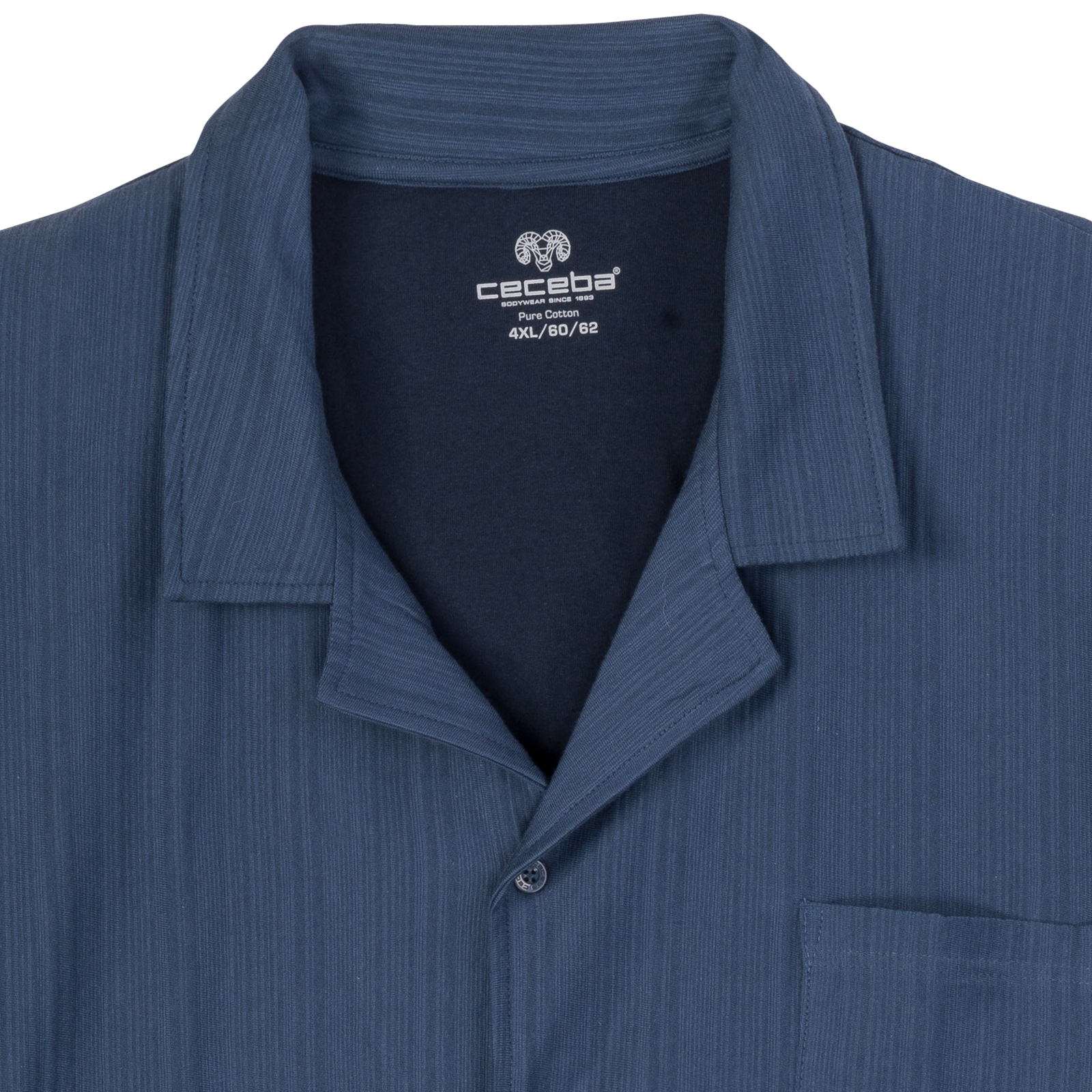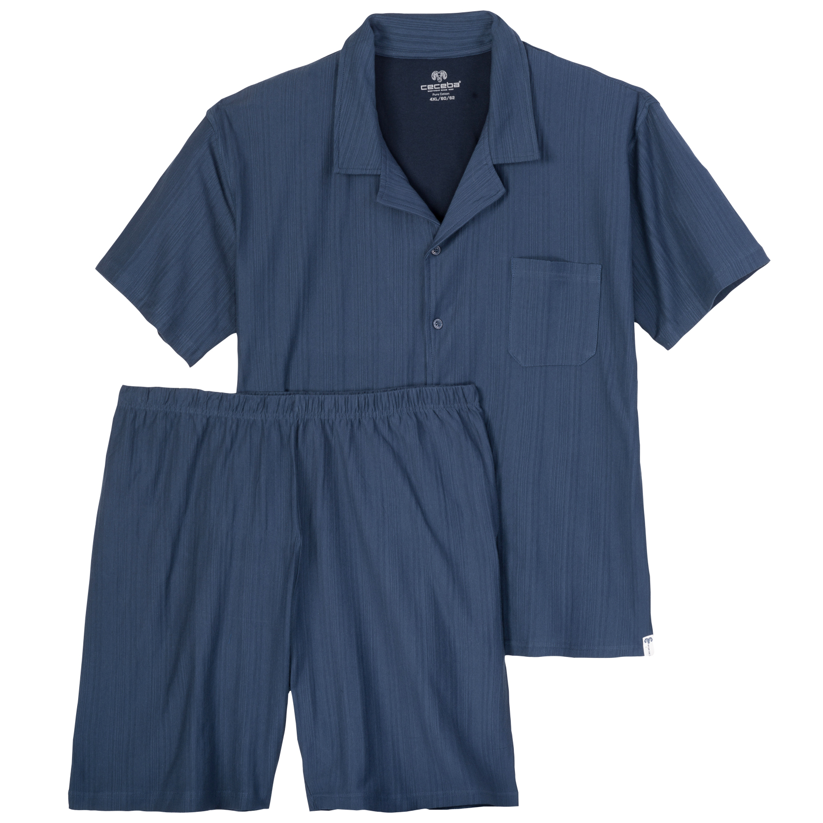 Genau richtig für milde Temperaturen- dieser Shorty in Übergrößen von Ceceba bietet ein rundum angenehmes Tragegefühl! Der angenehme Baumwoll-Jersey fühlt sich weich auf der Haut an und bietet zusammen mit der lockeren Passform hohen Tragekomfort. Das Oberteil überzeugt mit einer modernen, durchgeknöpften Knopfleiste, Reverskragen und Brusttasche. Die kurze Hose mit elastischem Bund garantiert besten Tragekomfort. Das feine Streifen-Design rundet das Ganze ab.