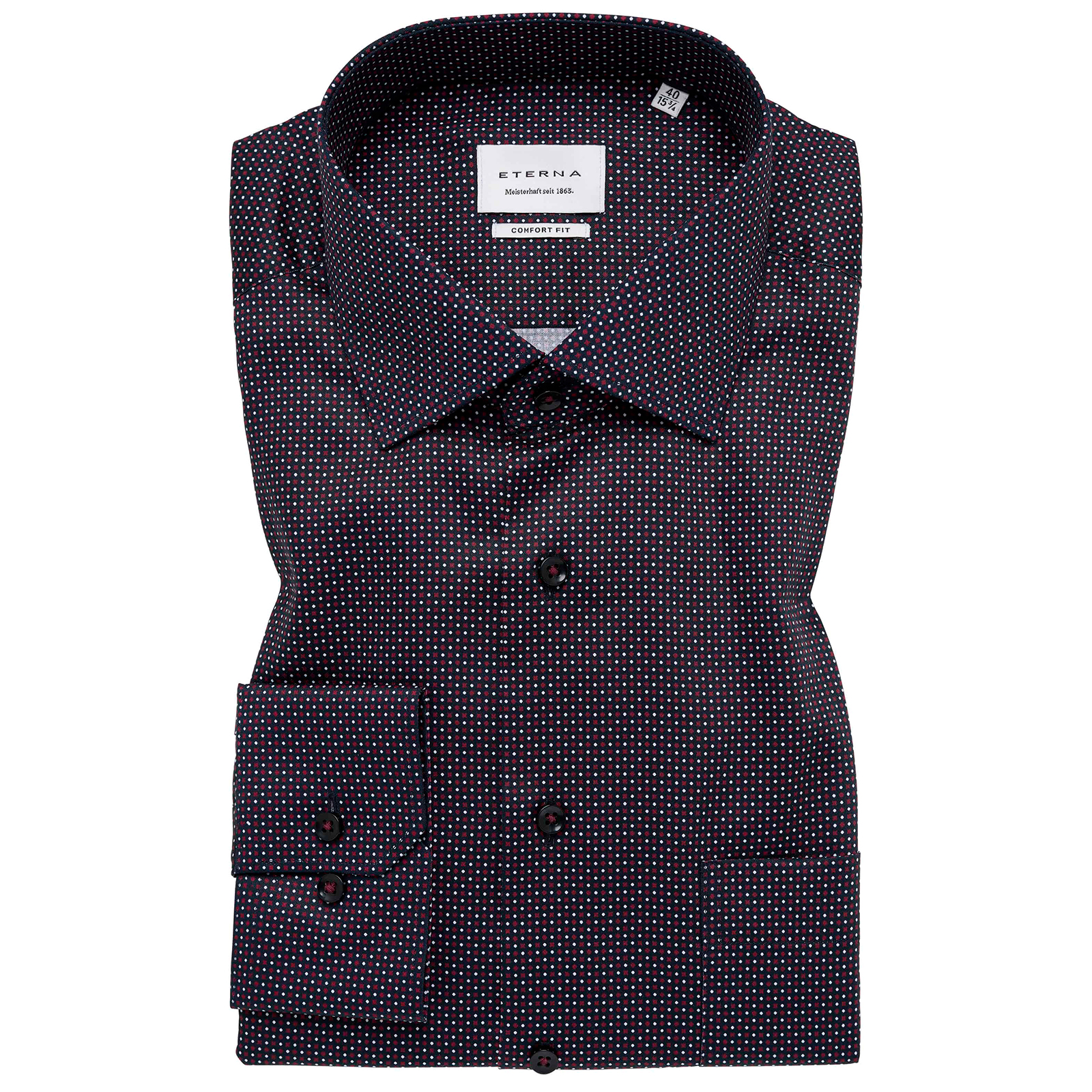 Eterna bügelfreies Businesshemd mit Allovermuster schwarz-weinrot