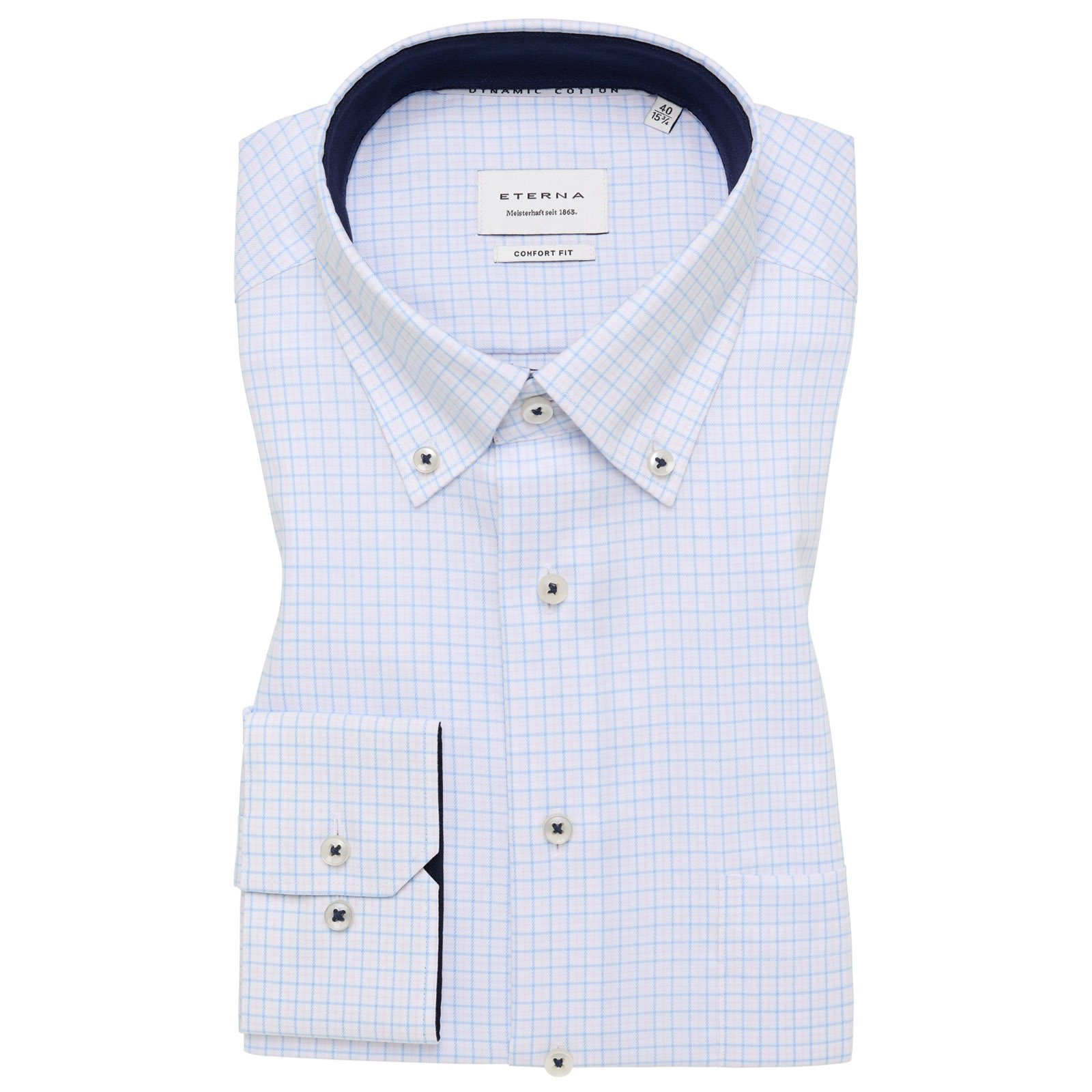 Eterna bügelfreies Langarmhemd hellblau-rosa-weiß kariert