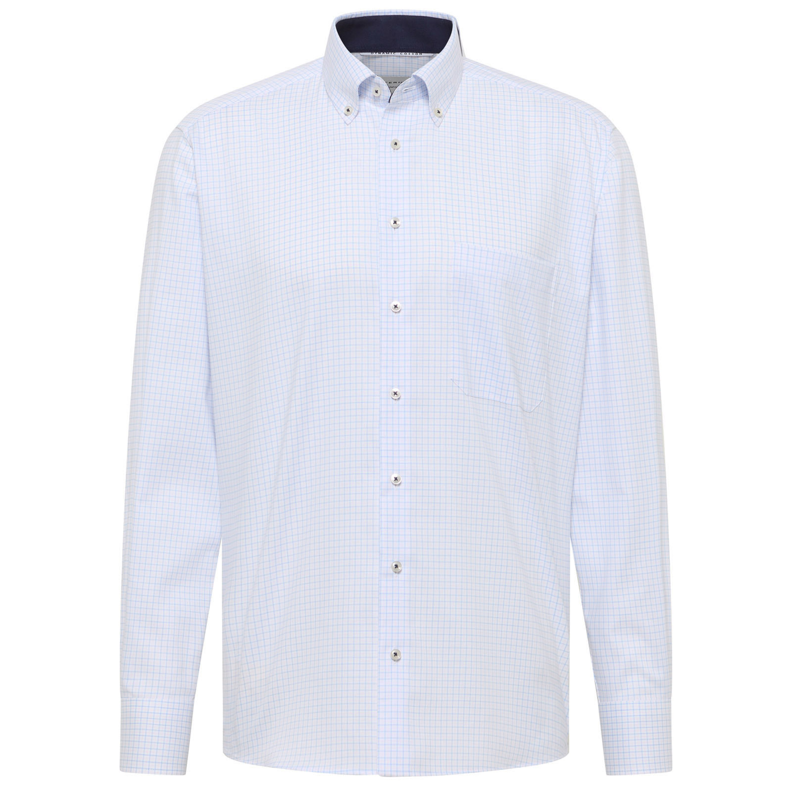 Bei diesem Kurzarmhemd in großen Größen von Eterna schenken Ihnen der bügelfreie Baumwoll-Twill mit Struktur, der bequeme Schnitt (Comfort-fit) und die erstklassige Verarbeitung maximalen Tragekomfort. Das dezente Gitterkaro-Dessin wird von Details wie dem sportiven Button-down-Kragen, einer Brusttasche und weitenverstellbaren Manschetten ergänzt.