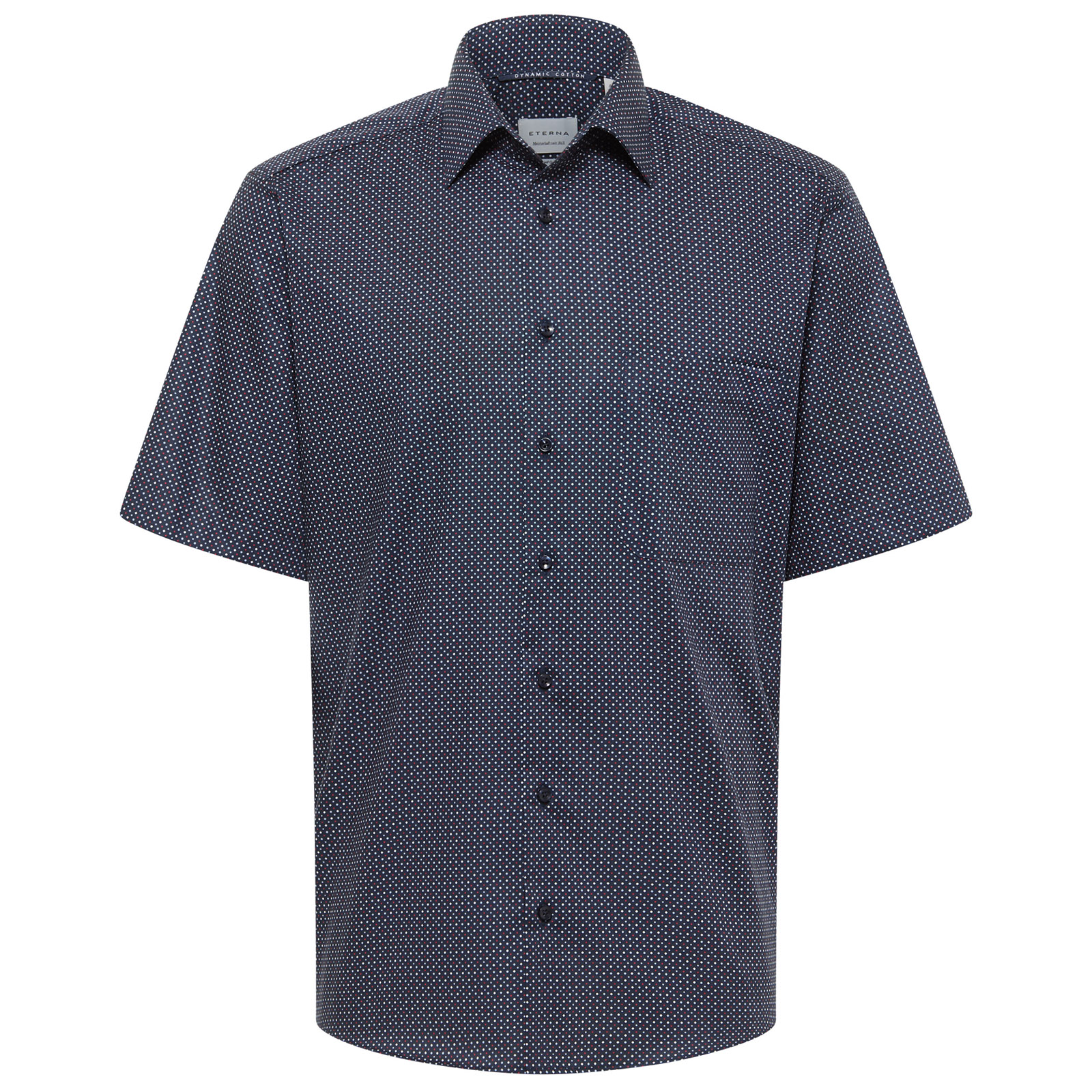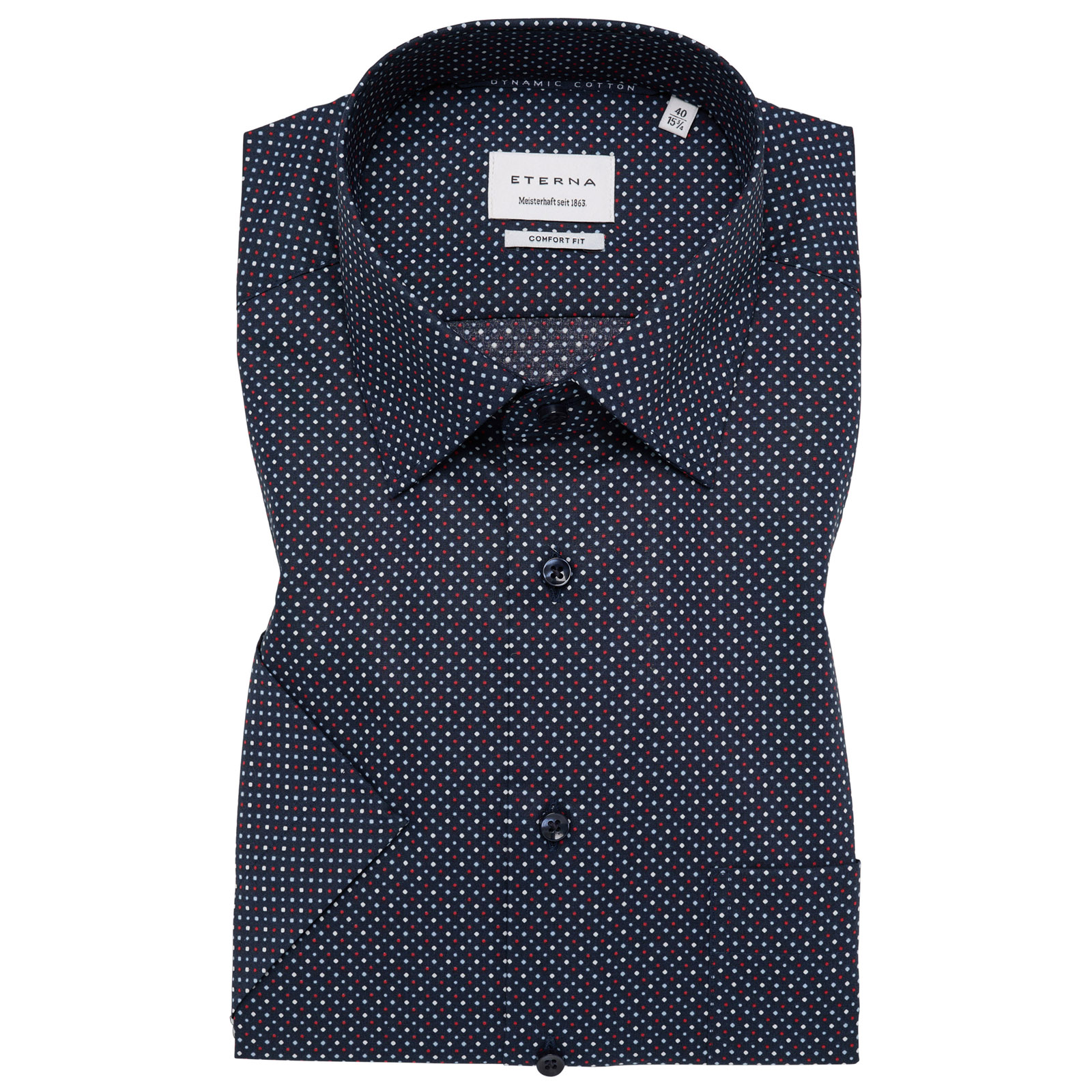Eterna bügelfreies Kurzarmhemd navy-weiß-rot gemustert