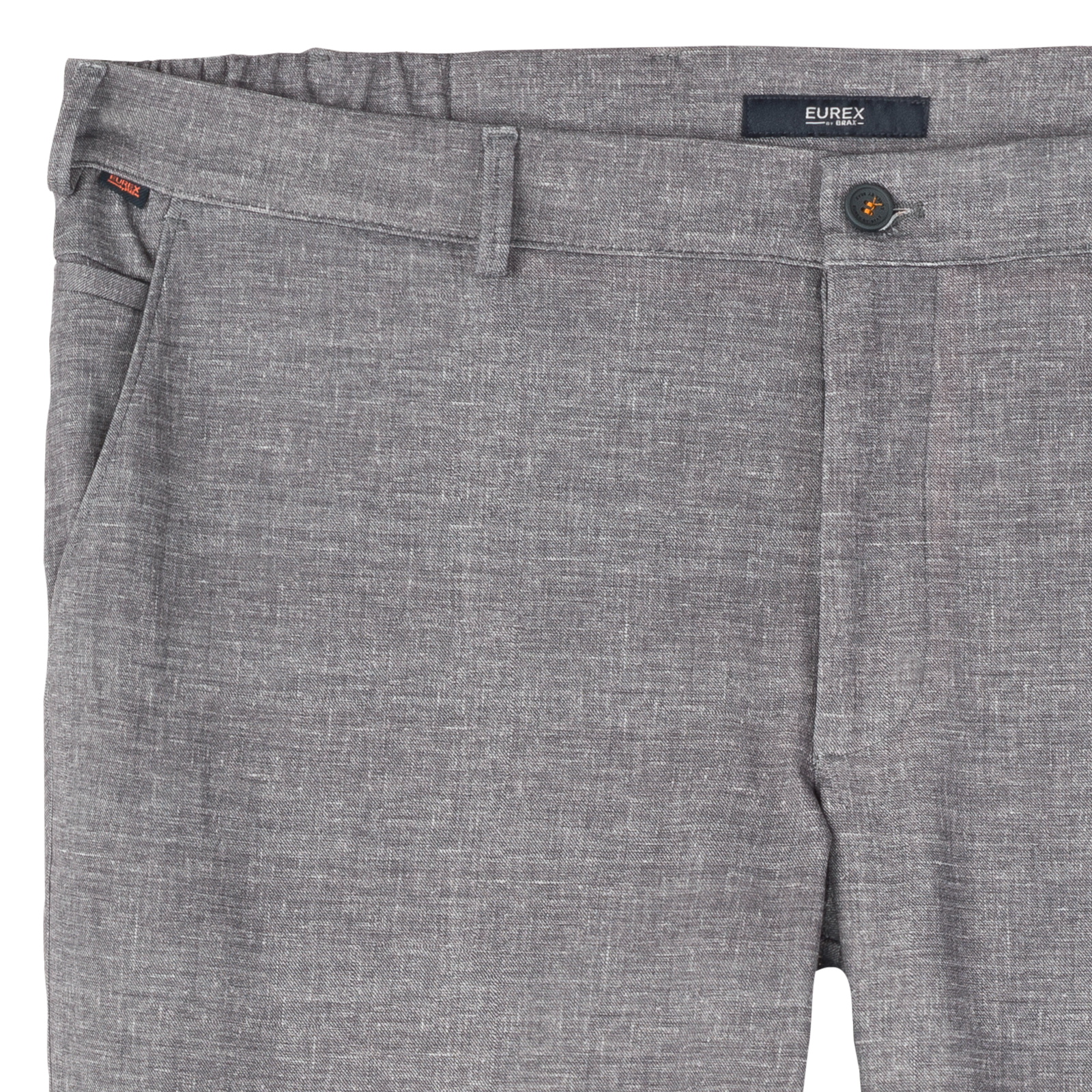 Diese Hose in Übergrößen von Eurex by Brax in dezenter Melange-Optik eine Chinohose nach Joggpant-Art und wie geschaffen für den modernen, gepflegten Freizeit-oder Business-Look! Sie ist mit geradem Beinverlauf, niedriger Leibhöhe und aus weichem, knitterfreiem, farb- und formbeständigem 4-Wege-Stretch-Material gefertigt. Ein teilelastischer Dehnbund sorgt für bequemen Sitz. Neben den beiden vorderen Taschen, die rechte mit Münztäschchen und den beiden geknöpften Gesäß-Leistentaschen wartet die Hose mit einer Safety Pocket auf, einer zusätzlichen Tresortasche mit Reißverschluss in der rechten Einschubtasche.