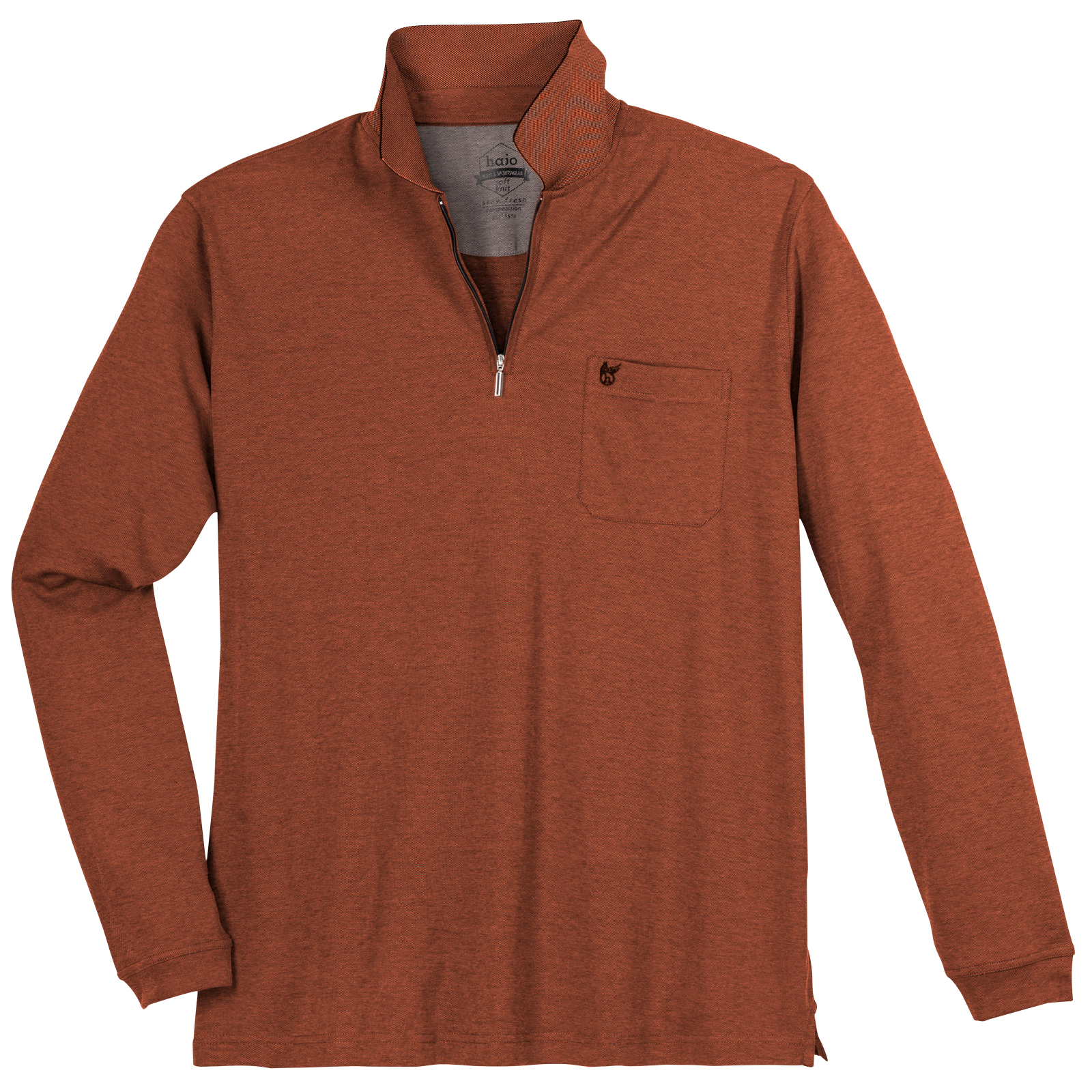 Zipper Langarm-Polo rost-schwarz melange XXL
