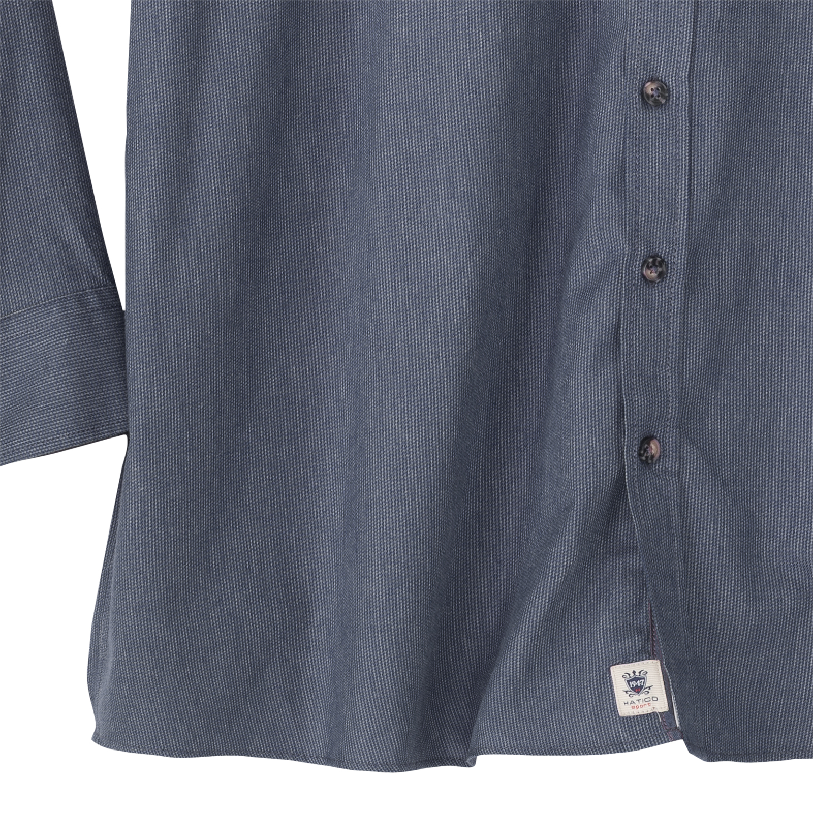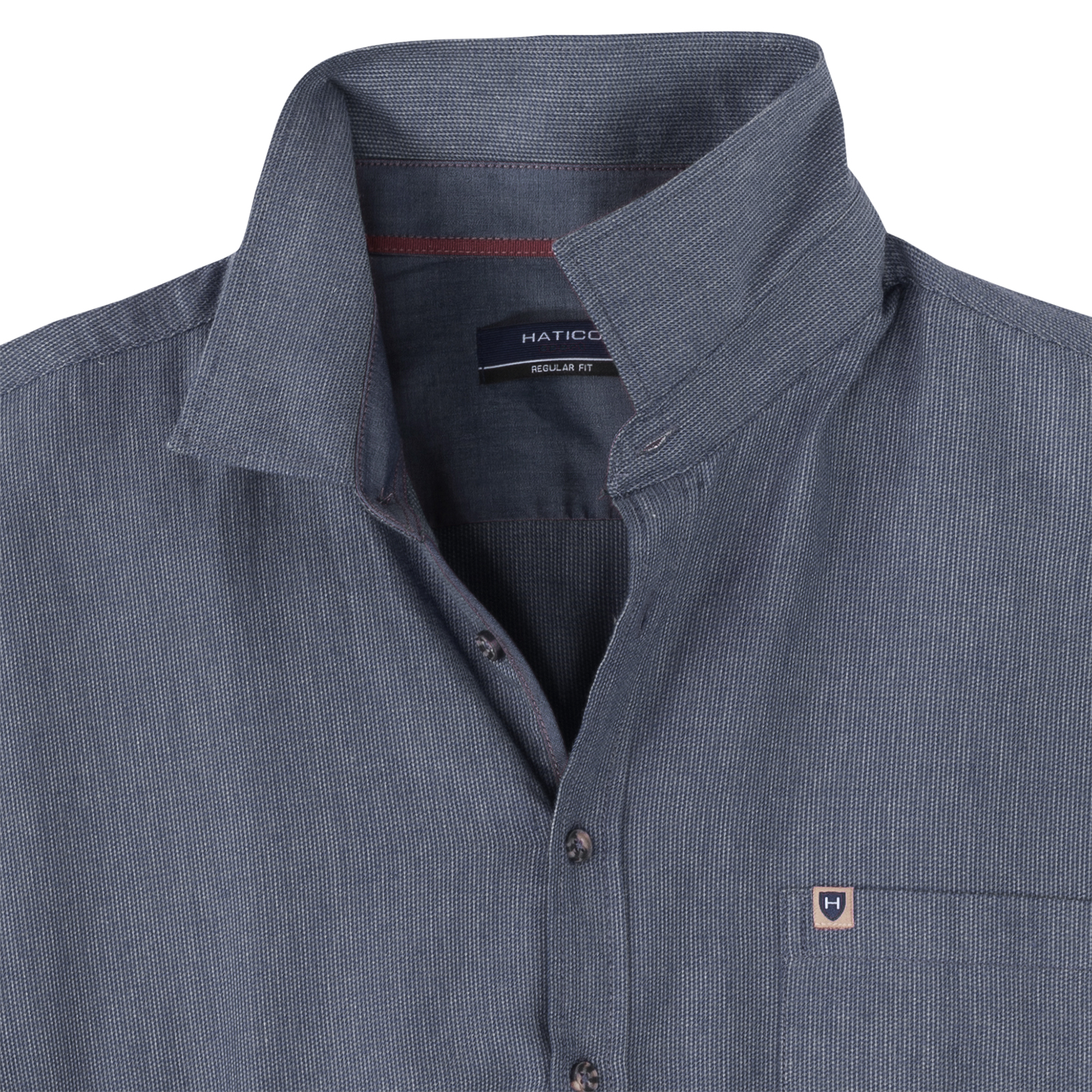 Dieses Langarmhemd in Übergrößen von Hatico überzeugt mit gepflegter Optik und durchdachten Details. Die bügelleichte Baumwollqualität mit Easy-Care-Ausstattung sorgt für hohen Tragekomfort und einfache Pflege. Kontrastbesätze an Kragen- und Manschetteninnenseite setzen dezente Akzente. Ausgestattet mit Kentkragen, Brusttasche, weitenverstellbaren Manschetten und bequemem Regular Fit – ideal für Büro und Alltag.