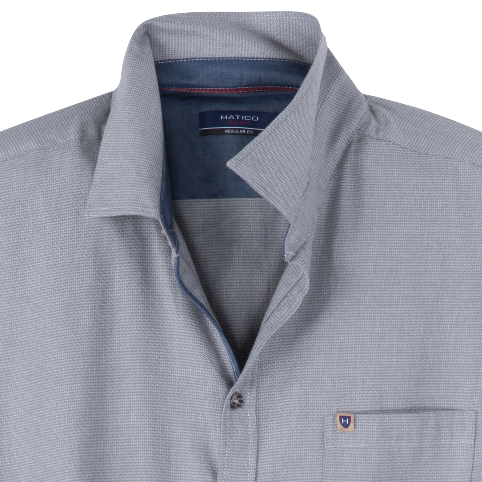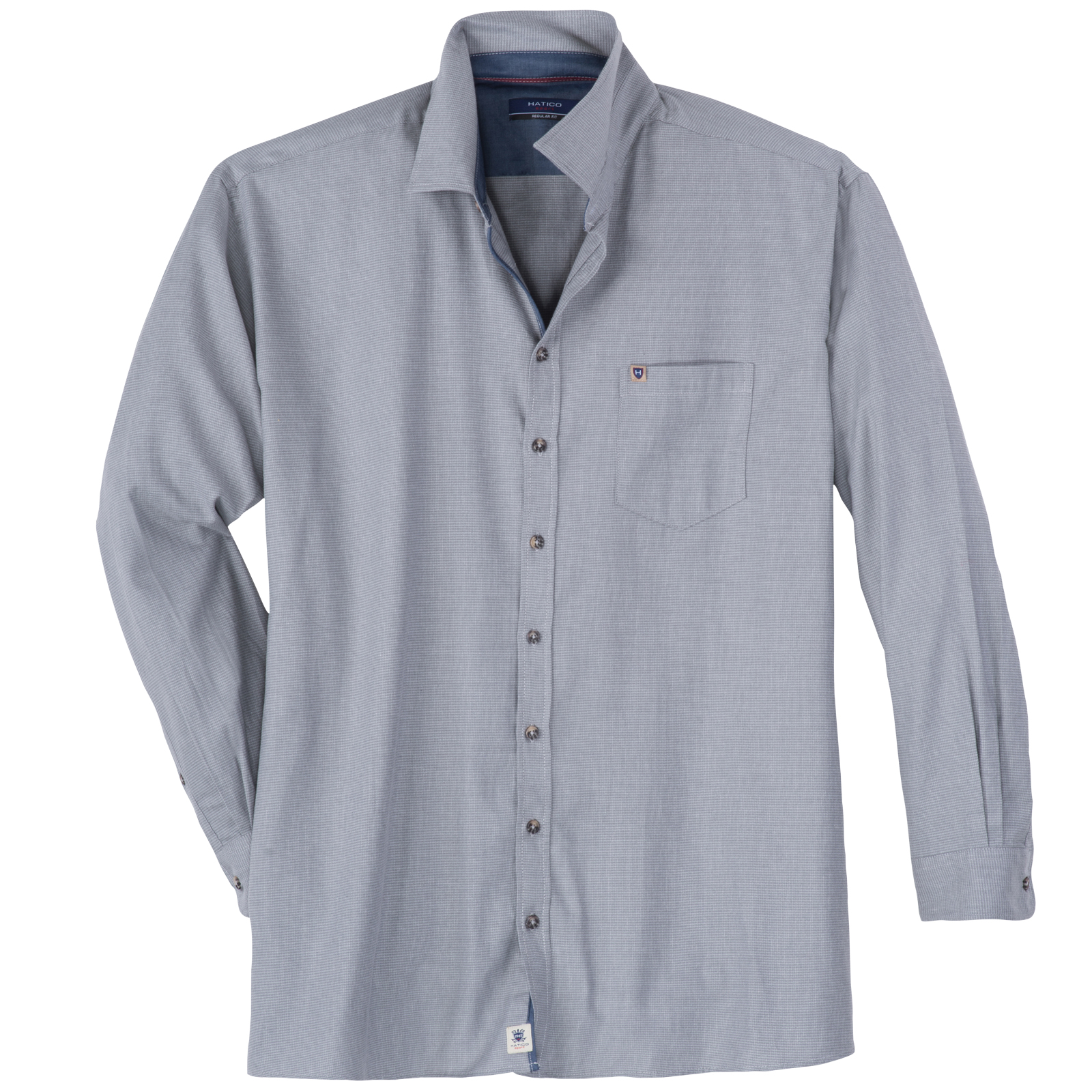 Dieses Langarmhemd in Übergrößen von Hatico überzeugt mit zeitloser Eleganz in dezenten Grautönen. Die bügelleichte Baumwollqualität mit Easy-Care-Ausstattung sorgt für hohen Tragekomfort und unkomplizierte Pflege. Kontrastbesätze an Kragen- und Manschetteninnenseite setzen stilvolle Akzente. Ausgestattet mit Kentkragen, Brusttasche, weitenverstellbaren Manschetten und bequemem Regular Fit - ideal für Büro und gepflegte Freizeitlooks.