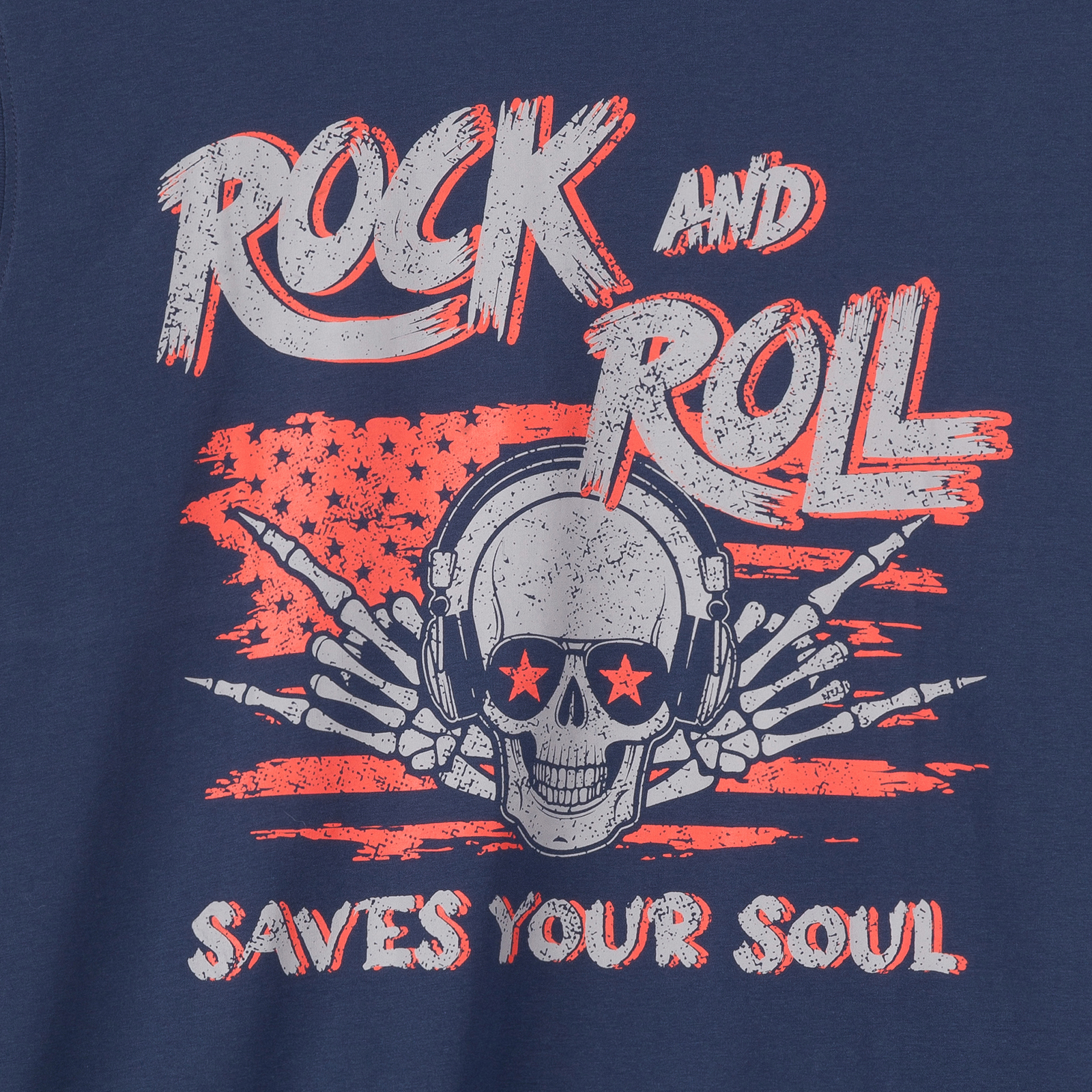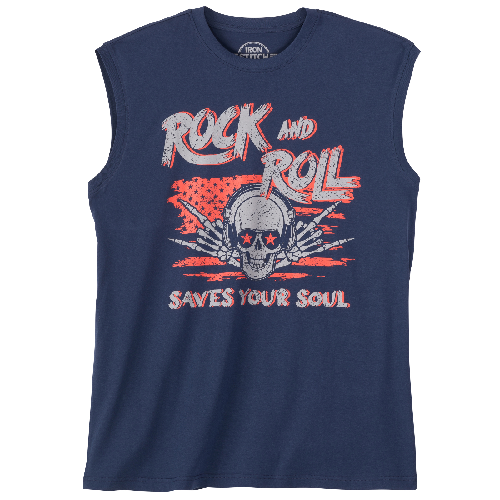 Iron Stitch Muskelshirt denimblau mit Totenkopfprint - Modell: Rock and Roll