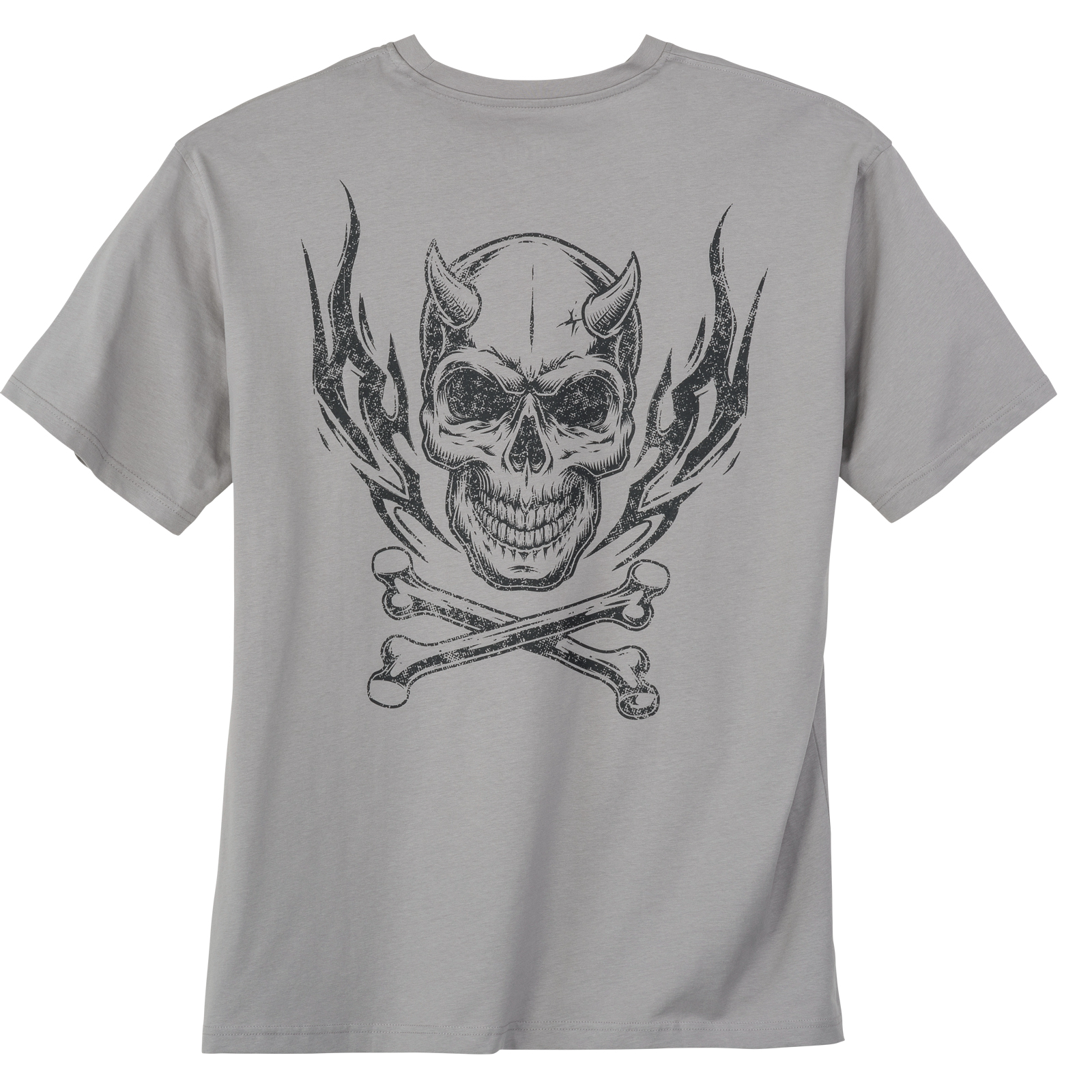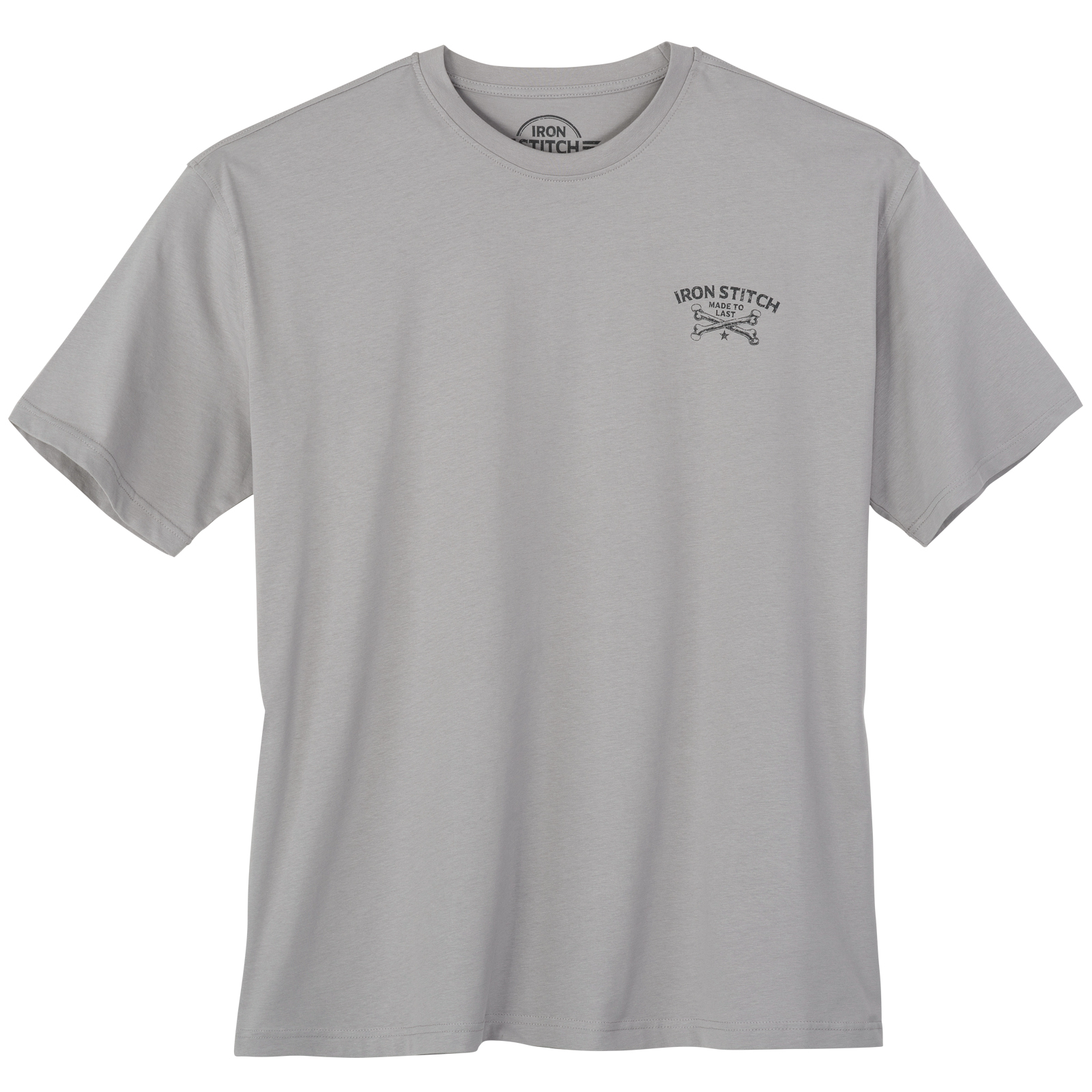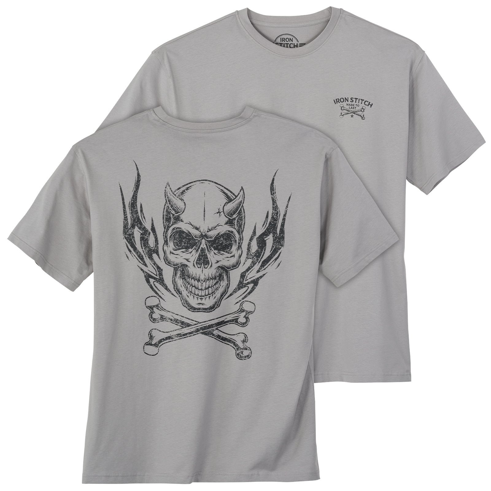 Iron Stitch T-Shirt grau mit Brust- und Rückenprint - Modell: Totenkopf