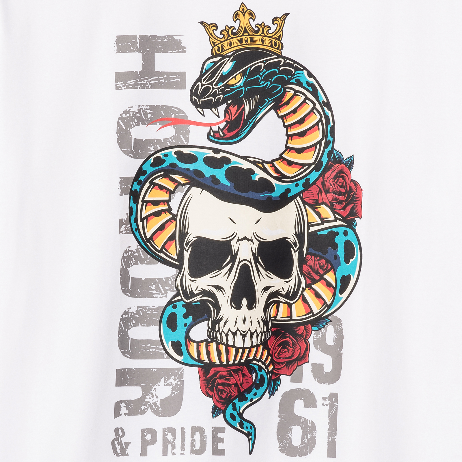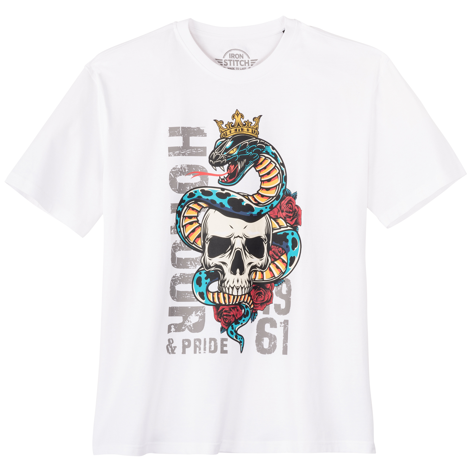 Iron Stitch T-Shirt weiß mit buntem Totenkopfprint