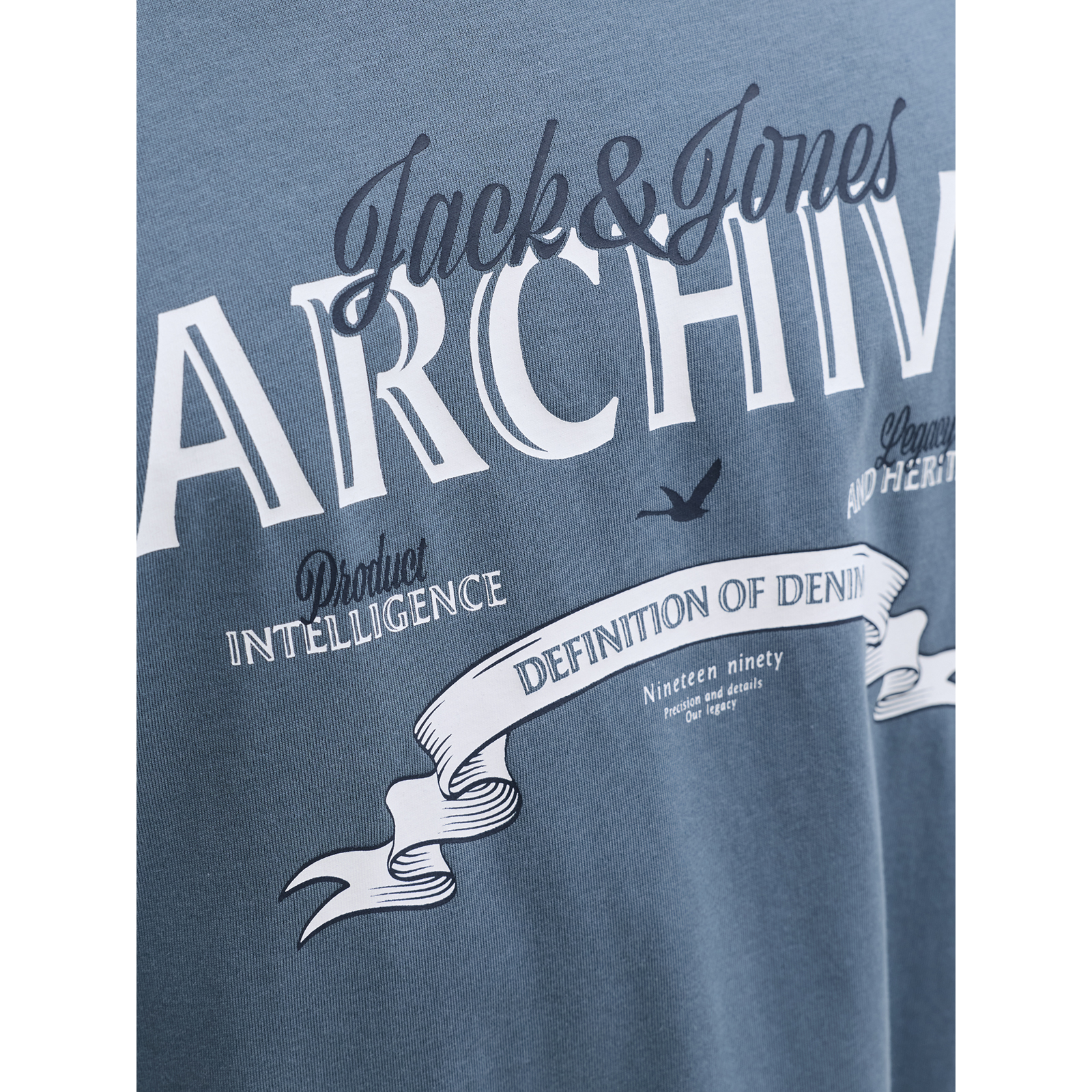 Jack&Jones T-Shirt rauchblau mit stylischem Logoprint - Modell: JJEDOVER DENIM
