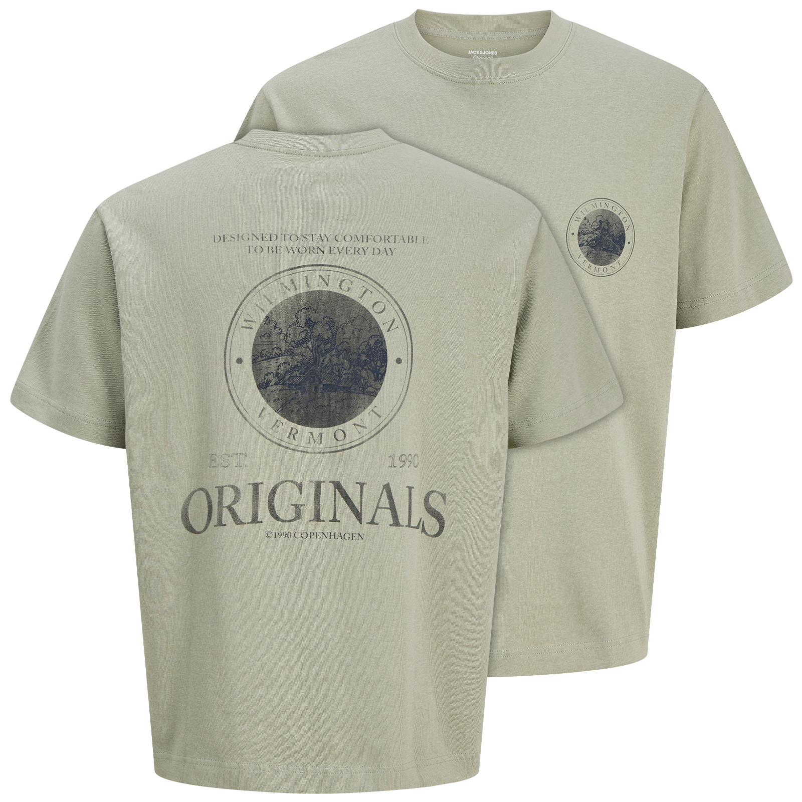 Jack&Jones T-Shirt khaki mit stylischem Brust- und Rückenprint - Modell: JORNANTUCKET