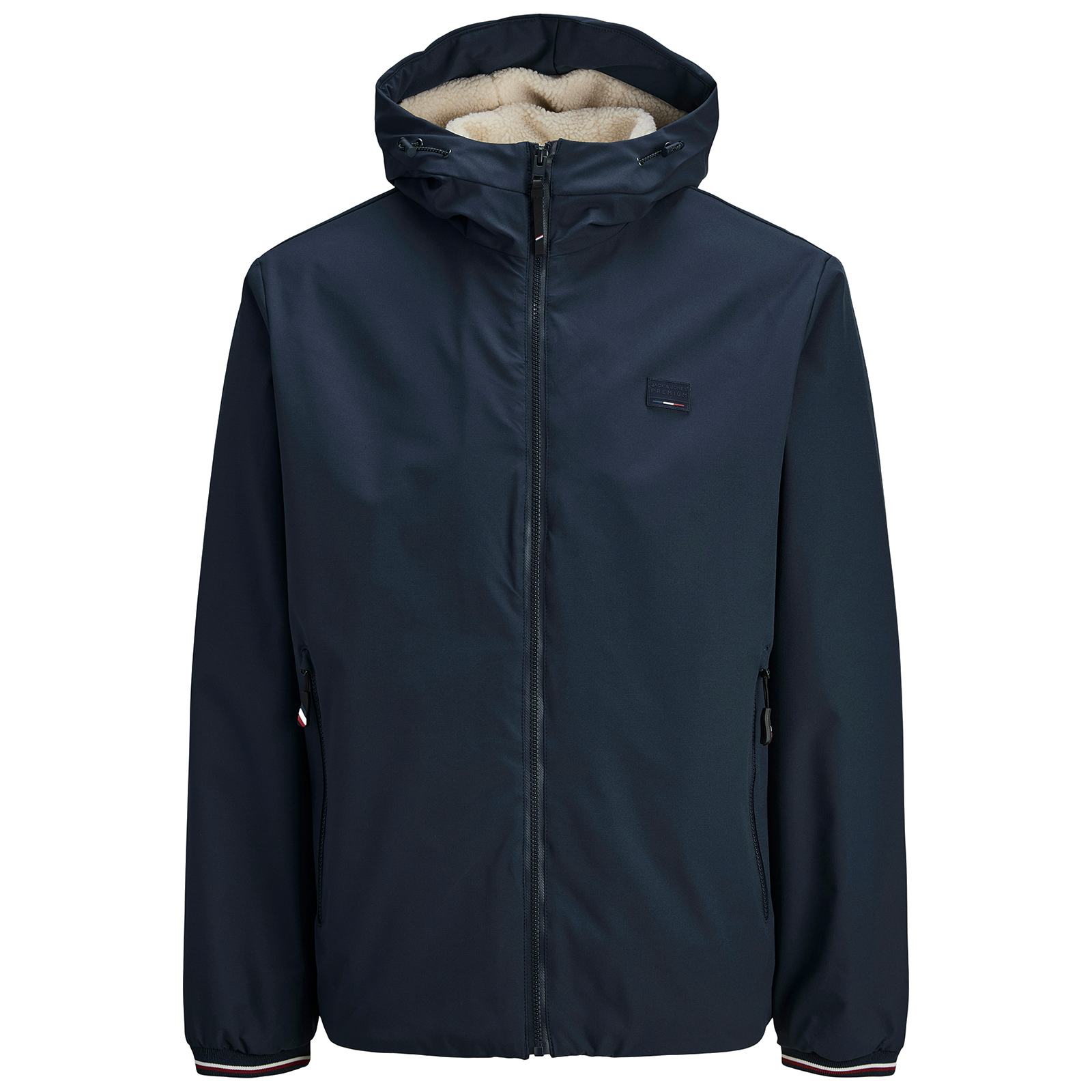 Diese Jacke von Jack&Jones in Übergrößen kombiniert Funktionalität mit modernem Design. Der gerade Schnitt sorgt für eine zeitlose Passform, während das robuste, matte Obermaterial zudem auch wasser- und windabweisend ist. Ein hoher Stehkragen und die feste Kapuze mit Elastic-Kordelzug und Stopper lässt sich individuell anpassen und schützt zuverlässig vor Wind. Modische Kontraststreifen am Reißverschluss und den Ärmelenden setzen stylische Akzente. Der Frontreißverschluss mit Untertritt verhindert Zugluft und sorgt für angenehmen Tragekomfort. Ausgestattet ist die Jacke mit zwei seitlichen Reißverschlusstaschen sowie eine Innen-Brusttasche mit Druckknopf. Das Teddyfell-Innenfutter wärmt besonders an kalten Tagen.