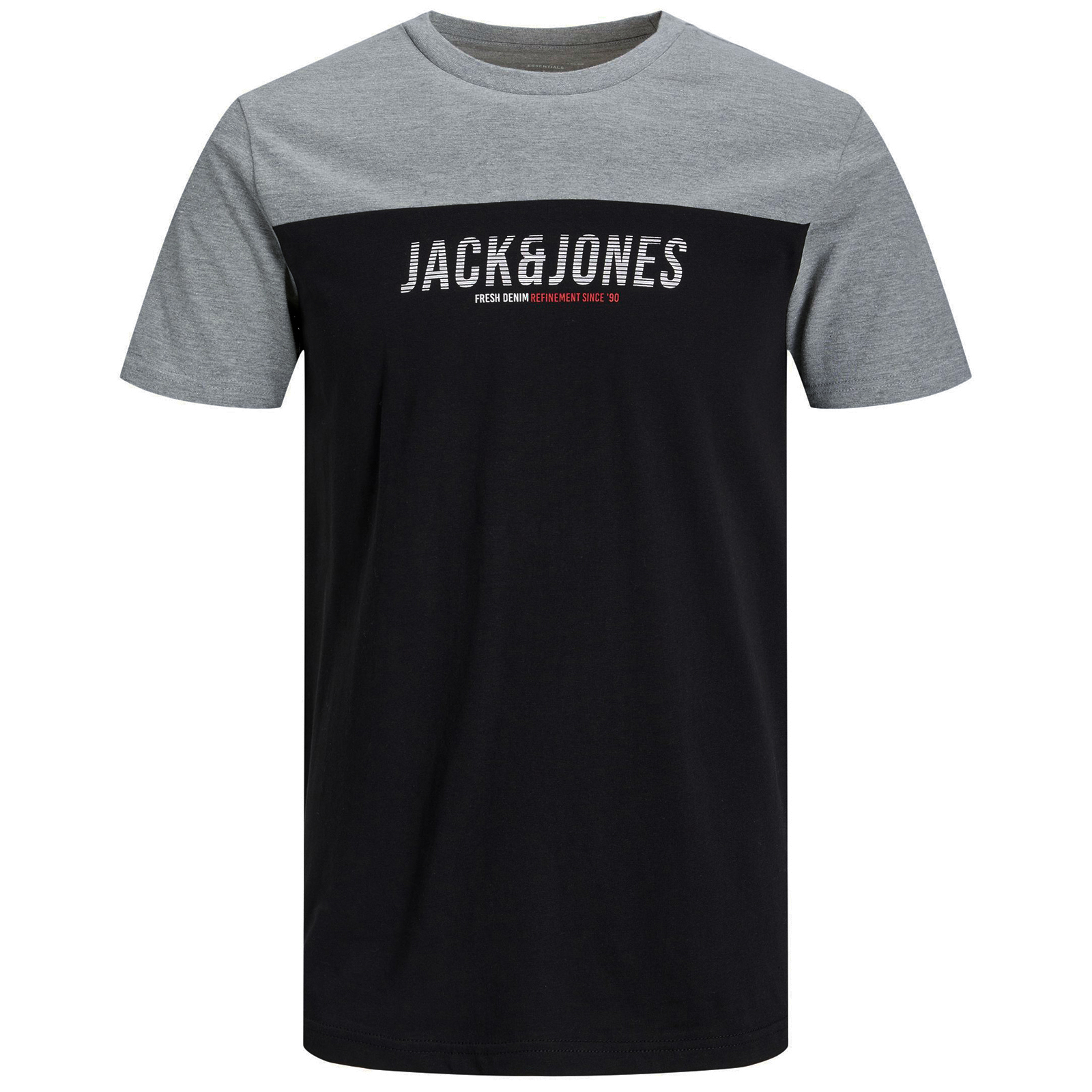 Jack & Jones Logo T-Shirt schwarz-grau melange - Modell: JJEDAN BLOCKING