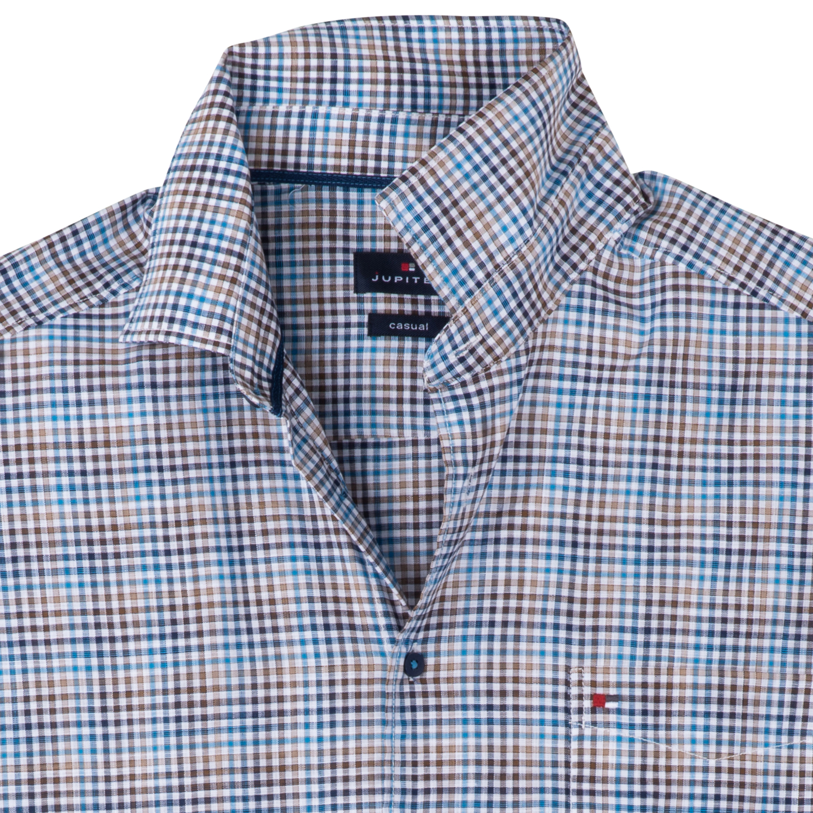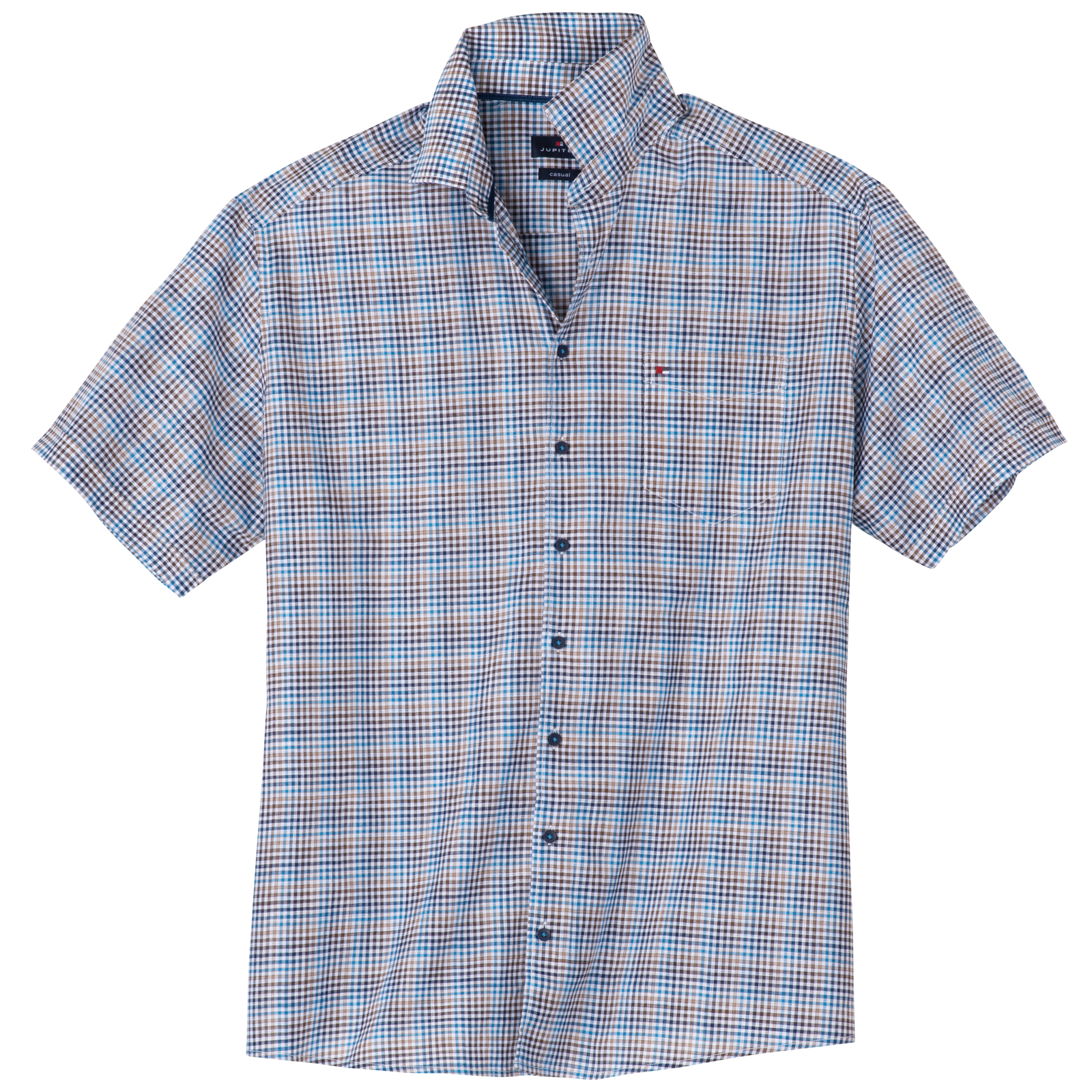 Jupiter Kurzarmhemd mit Mini-Karo blau-braun-weiß