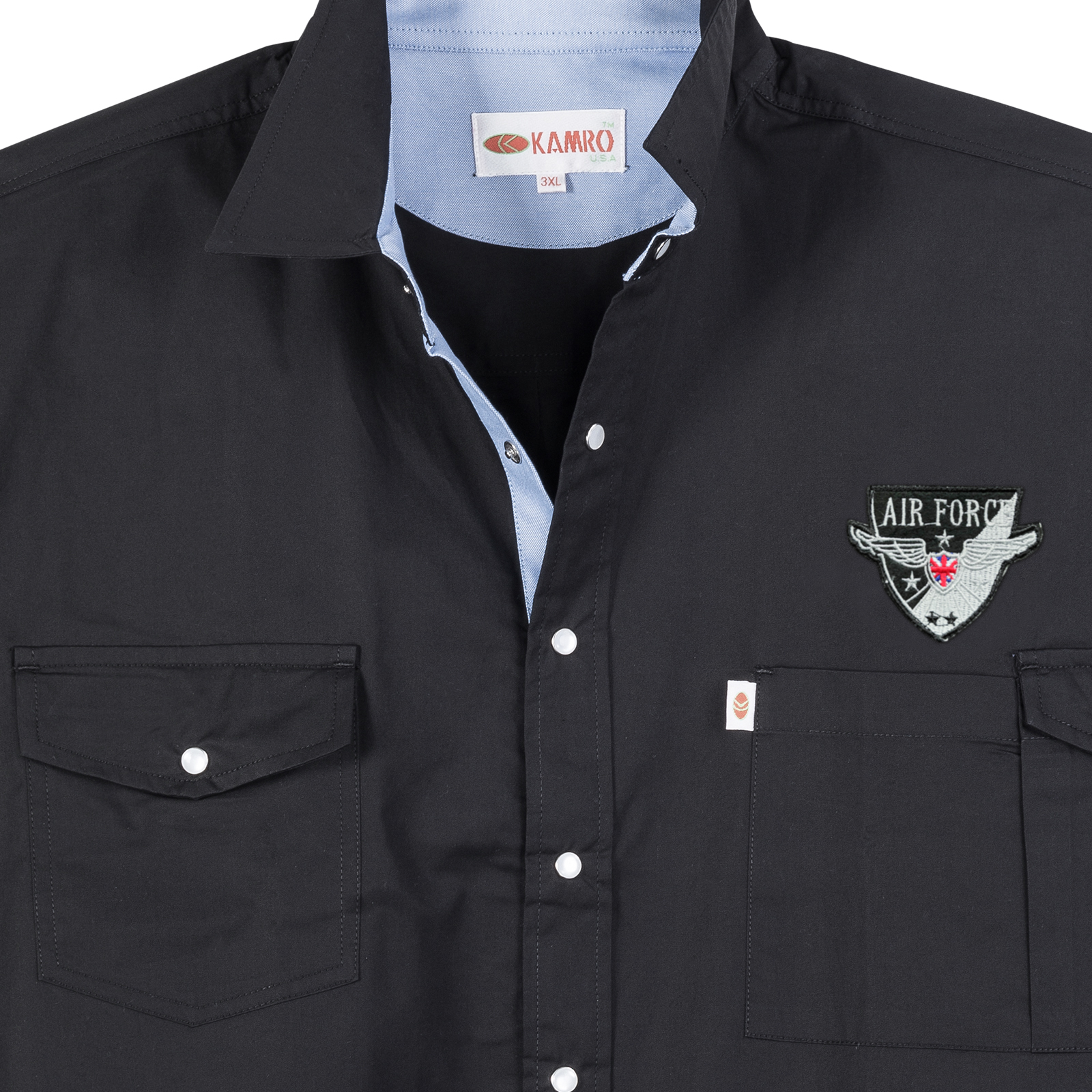 Kamro schwarzes Kurzarmhemd im Military-Style