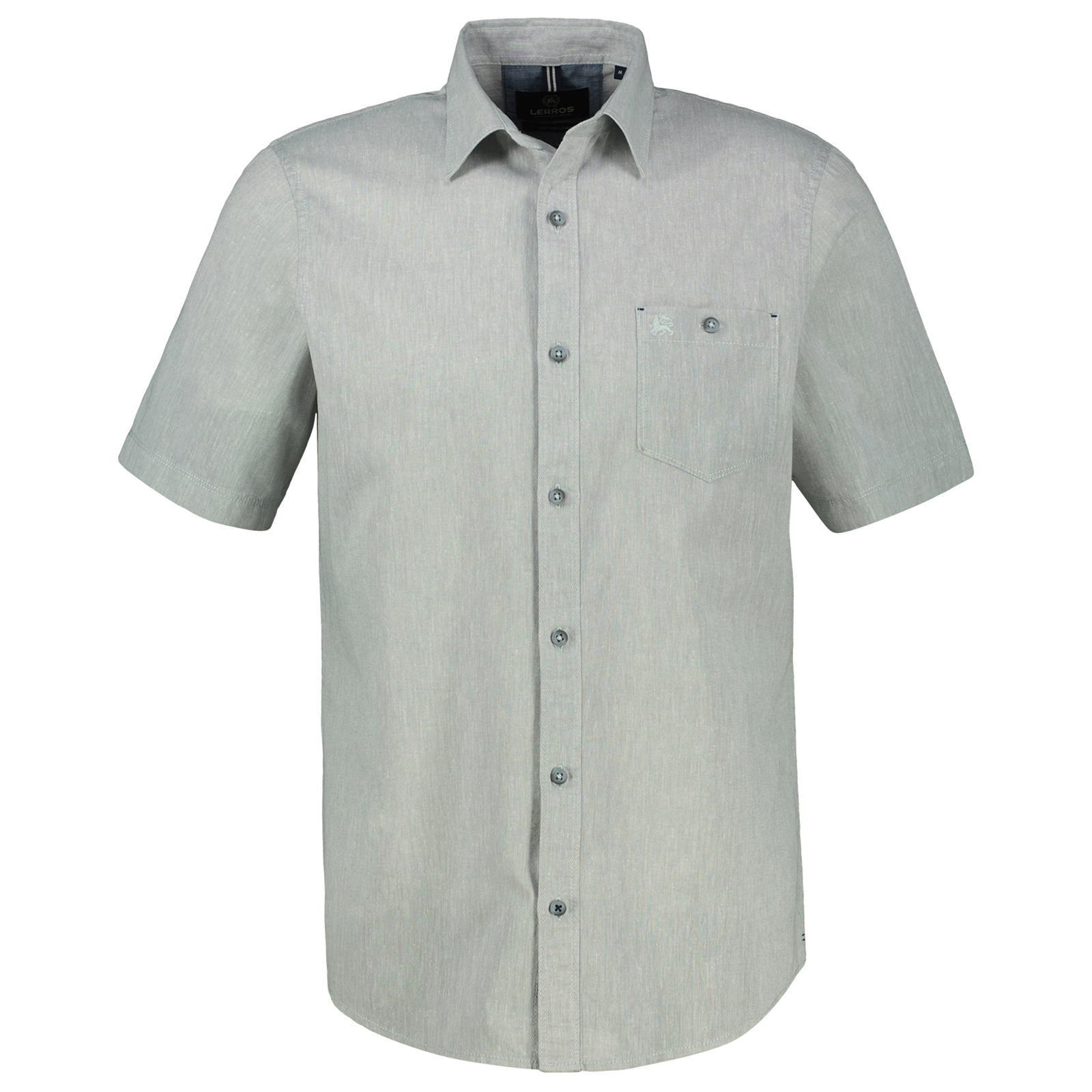 Lerros strukturiertes Kurzarmhemd hellgrau melange mit Leinenanteil