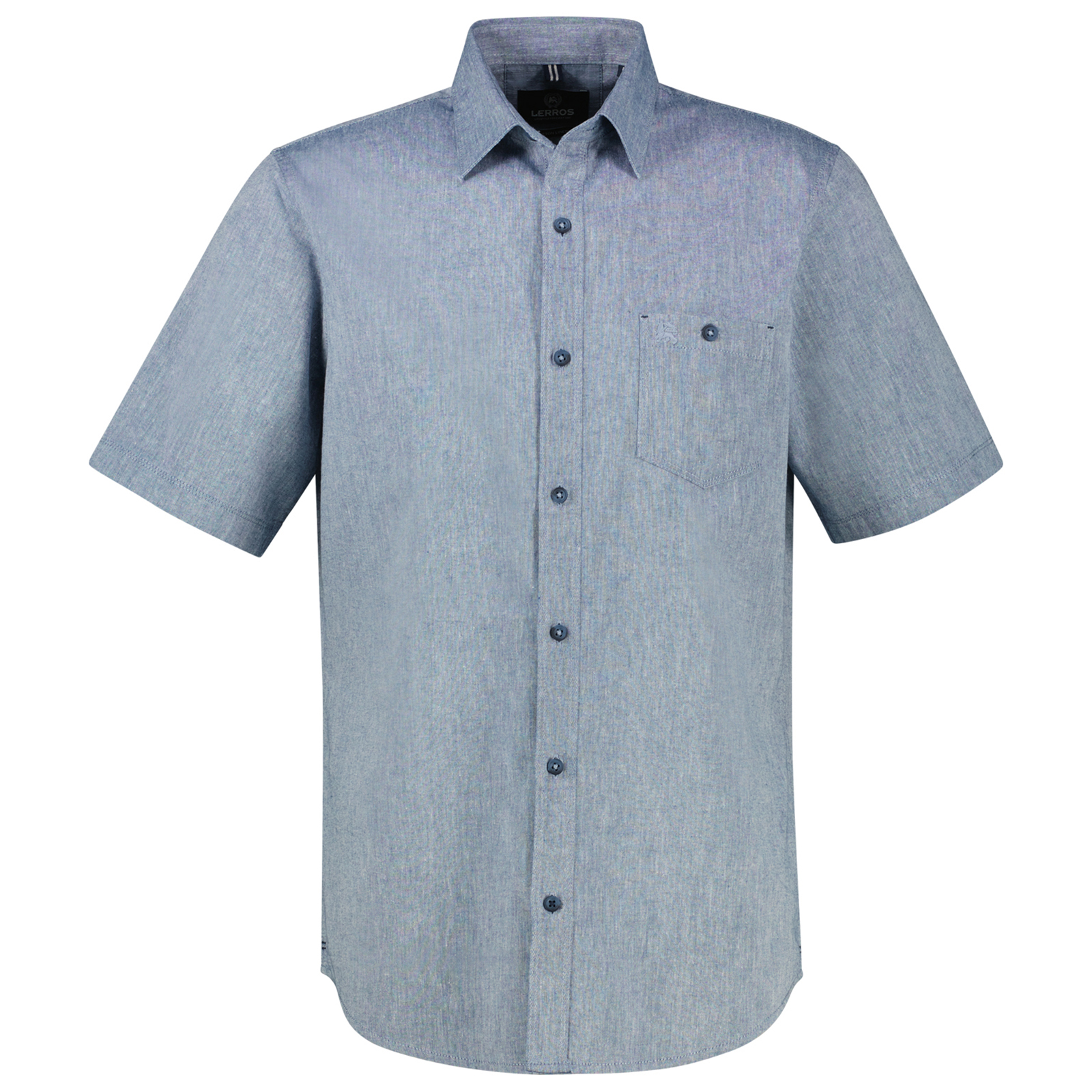 Lerros strukturiertes Kurzarmhemd navy melange mit Leinenanteil