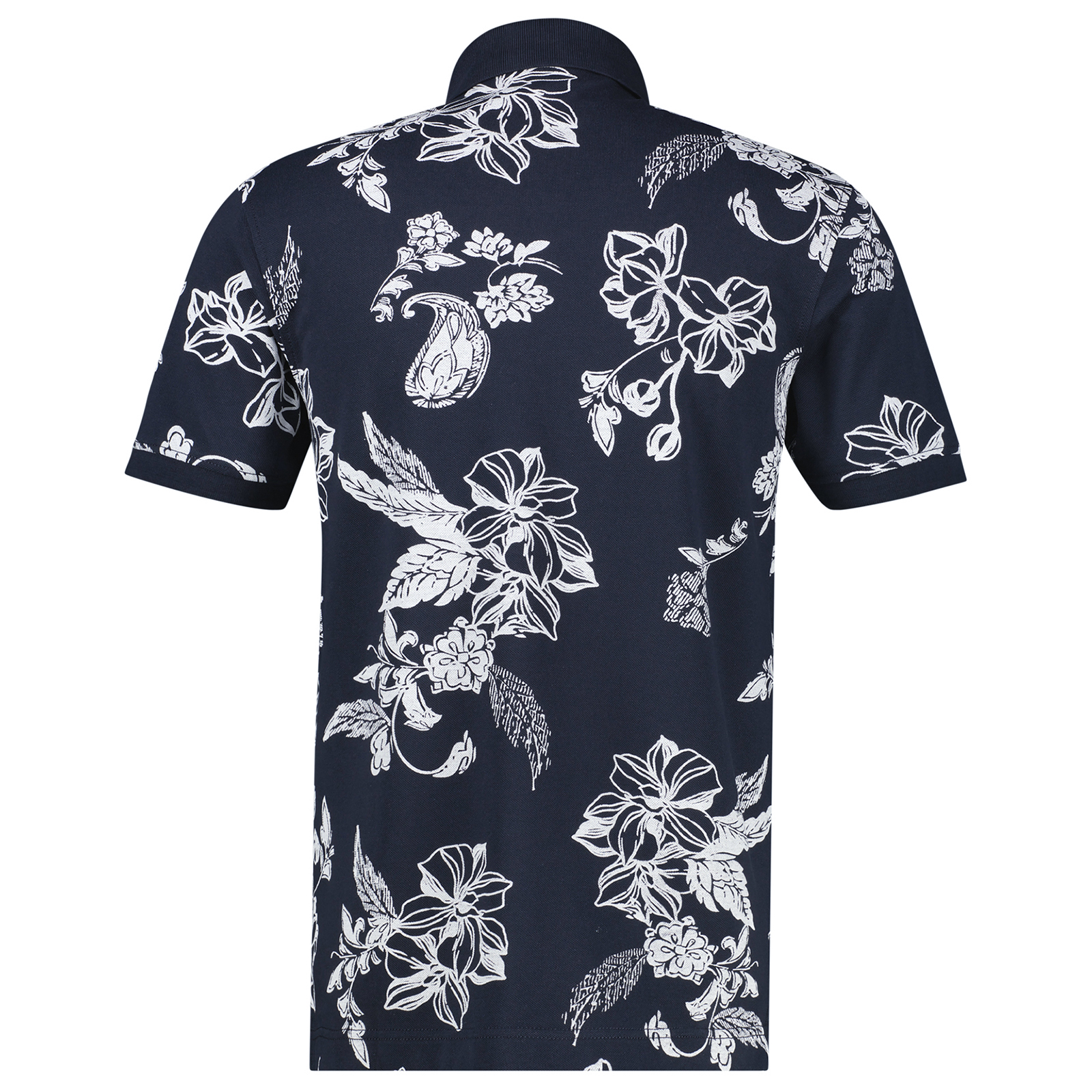 Übergrößen Poloshirt Floralmuster navy-weiß