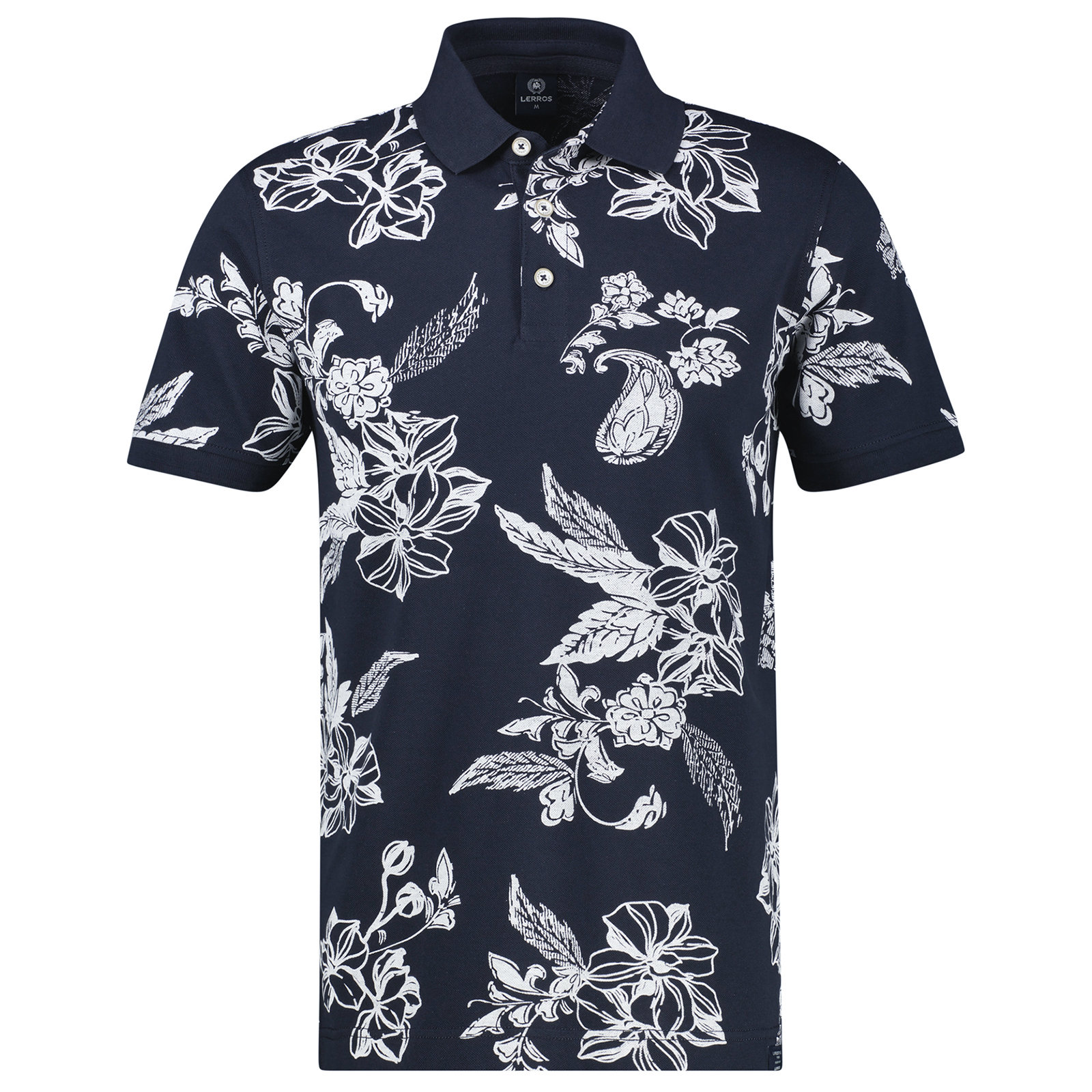 Diese Poloshirt in großen Größen von Lerros verbindet klassischen Stil mit frischen, sommerlichen Look! Das florale Allovermuster verleiht dem Shirt eine moderne Ausstrahlung und macht es zu einem echten Hingucker für Freizeit und Urlaub. Der Polokragen, die kurze Knopfleiste und elastisch gerippte Ärmelbündchen unterstreichen den klassischen Polo-Style. Der gerade Schnitt mit seitlichen Saumschlitzen und die hochwertige Piquéqualität aus reiner Baumwolle garantieren besten Tragekomfort.