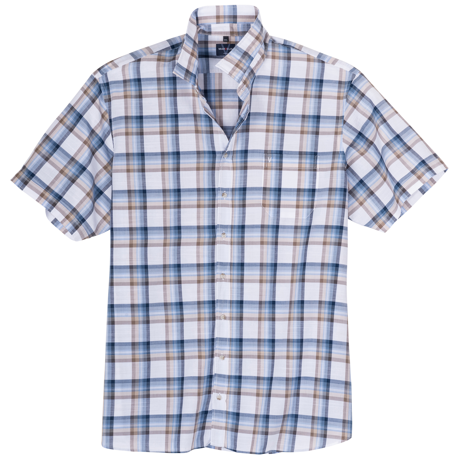 Übergrößen Kurzarmhemd Karo blau-weiß-beige