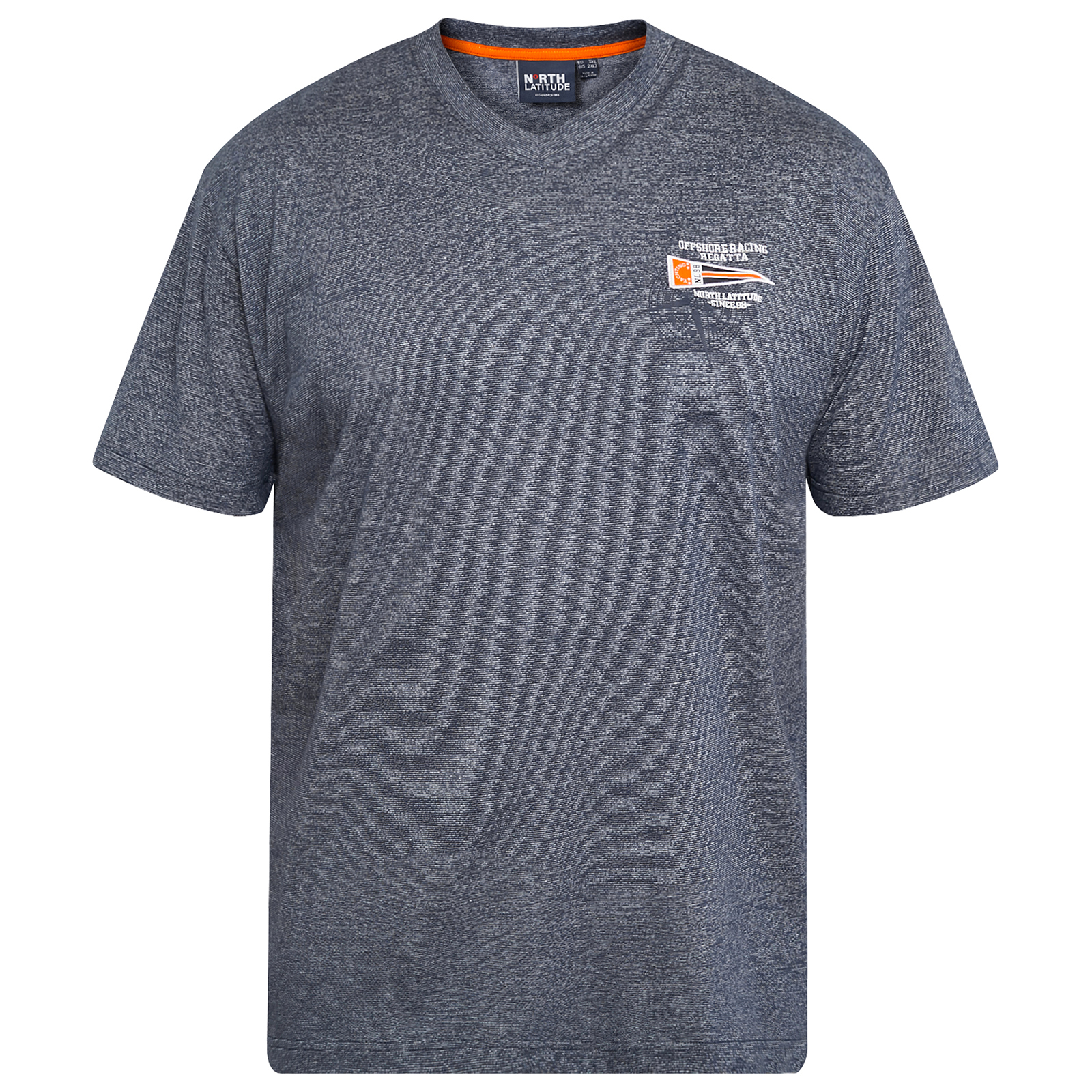 North Latitude T-Shirt navy melange mit V-Neck und Bruststickerei