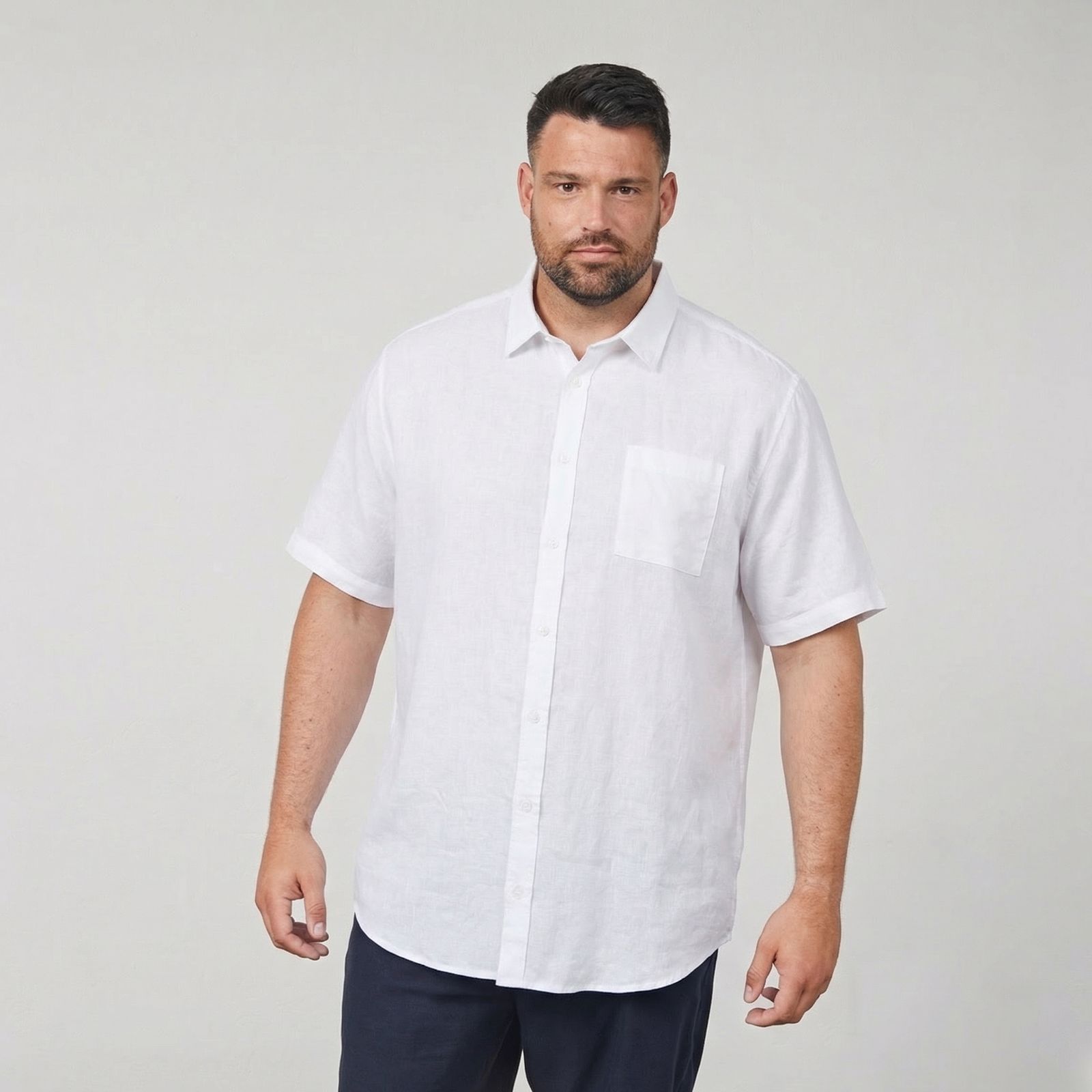 Übergröße Leinen-Kurzarmhemd weiß
