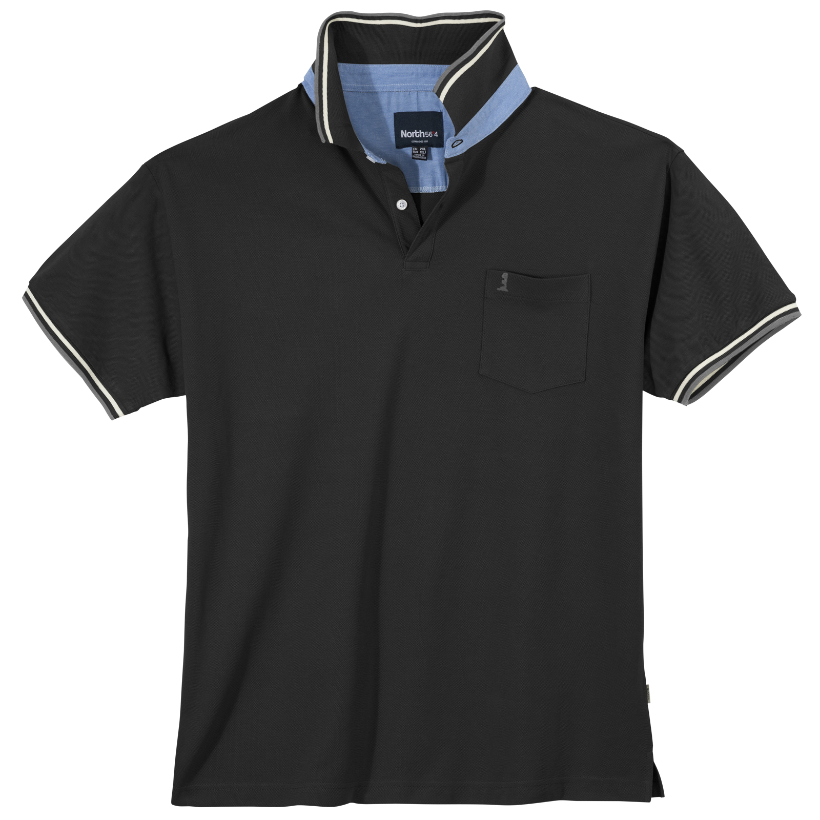 Dieses Übergrößen Poloshirt der Marke North 56°4 by Allsize kommt in bequemer Passform, mit kleinen seitlichen Saumschlitzen daher. Es ist aus pflegeleichtem Baumwoll-Piqué gefertigt und mit einer praktischen Brusttasche ausgestattet. Charakteristisch sind die Kontraststreifen-Abschlüsse an den Ärmelbündchen und am Kragen, beides ist aus elastischer Rippware gefertigt. Der Kragensteg in Denimoptik verleiht dem Polo noch das gewisse Etwas.