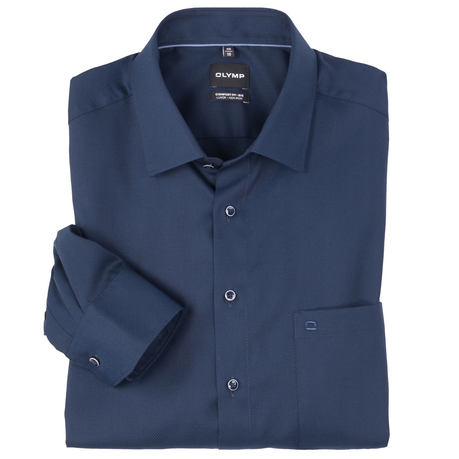 Olymp bügelfreies Langarmhemd dunkelblau Struktur