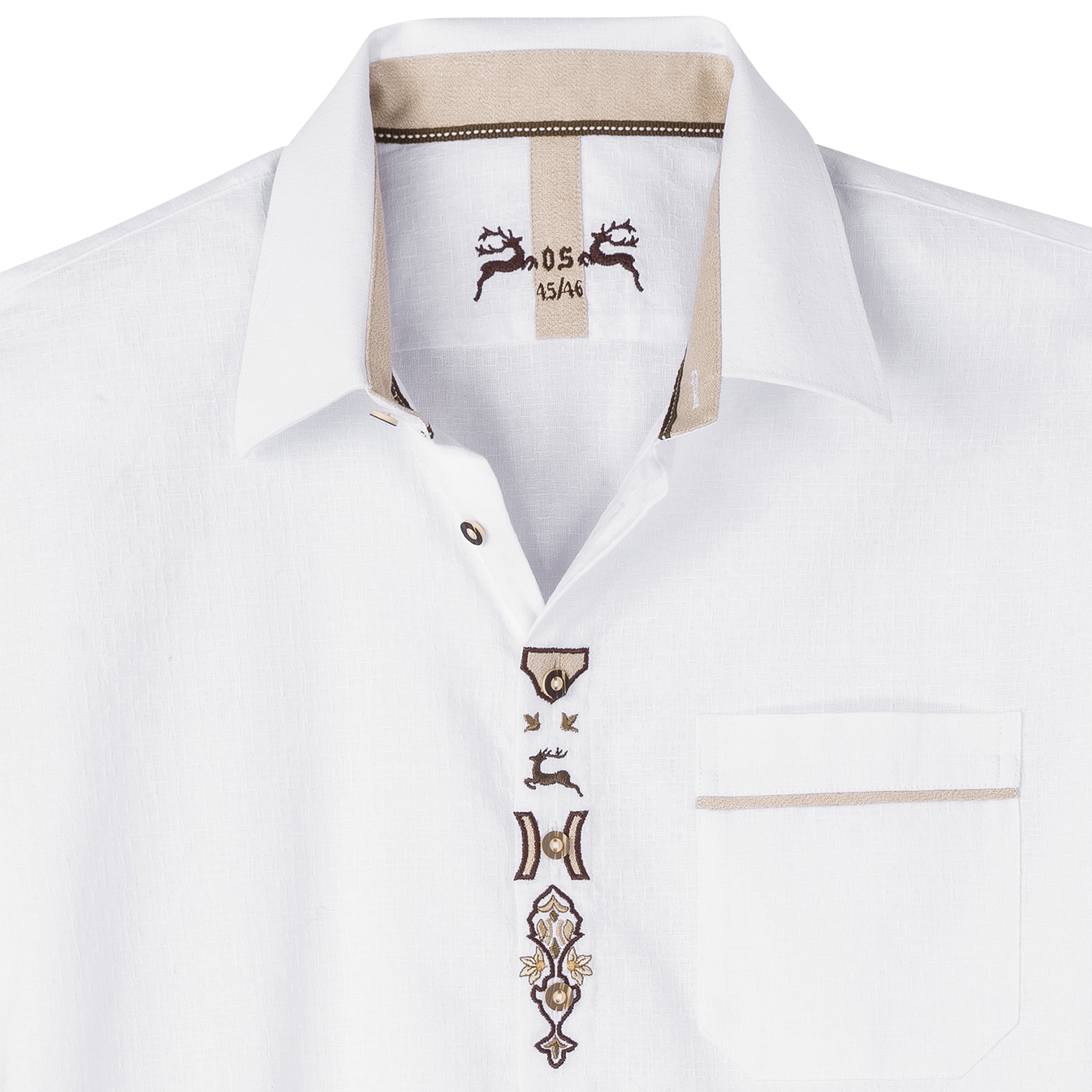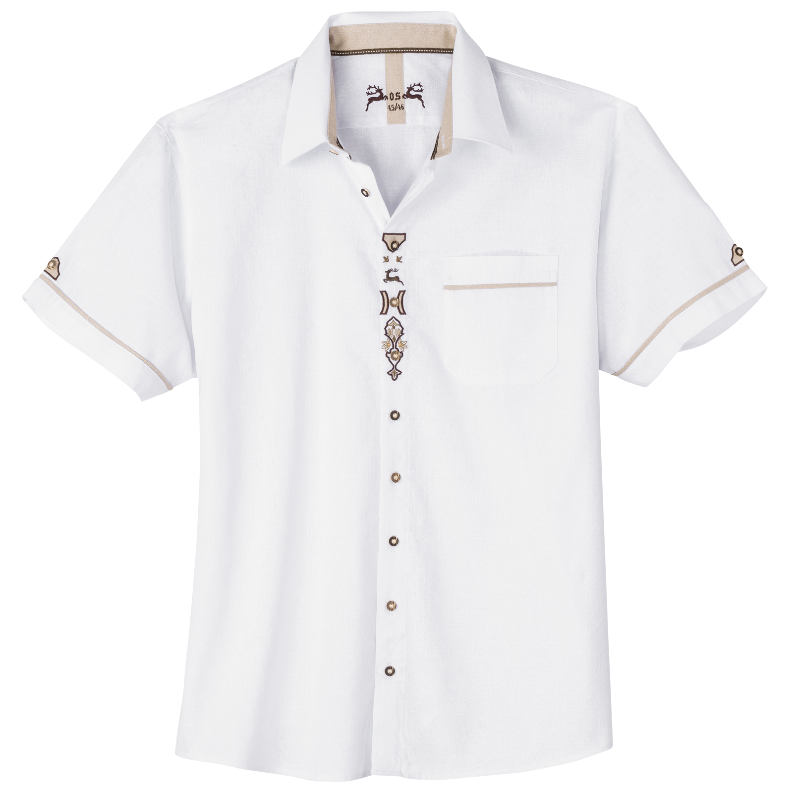 Orbis weißes Kurzarm-Trachtenhemd mit Stickerei