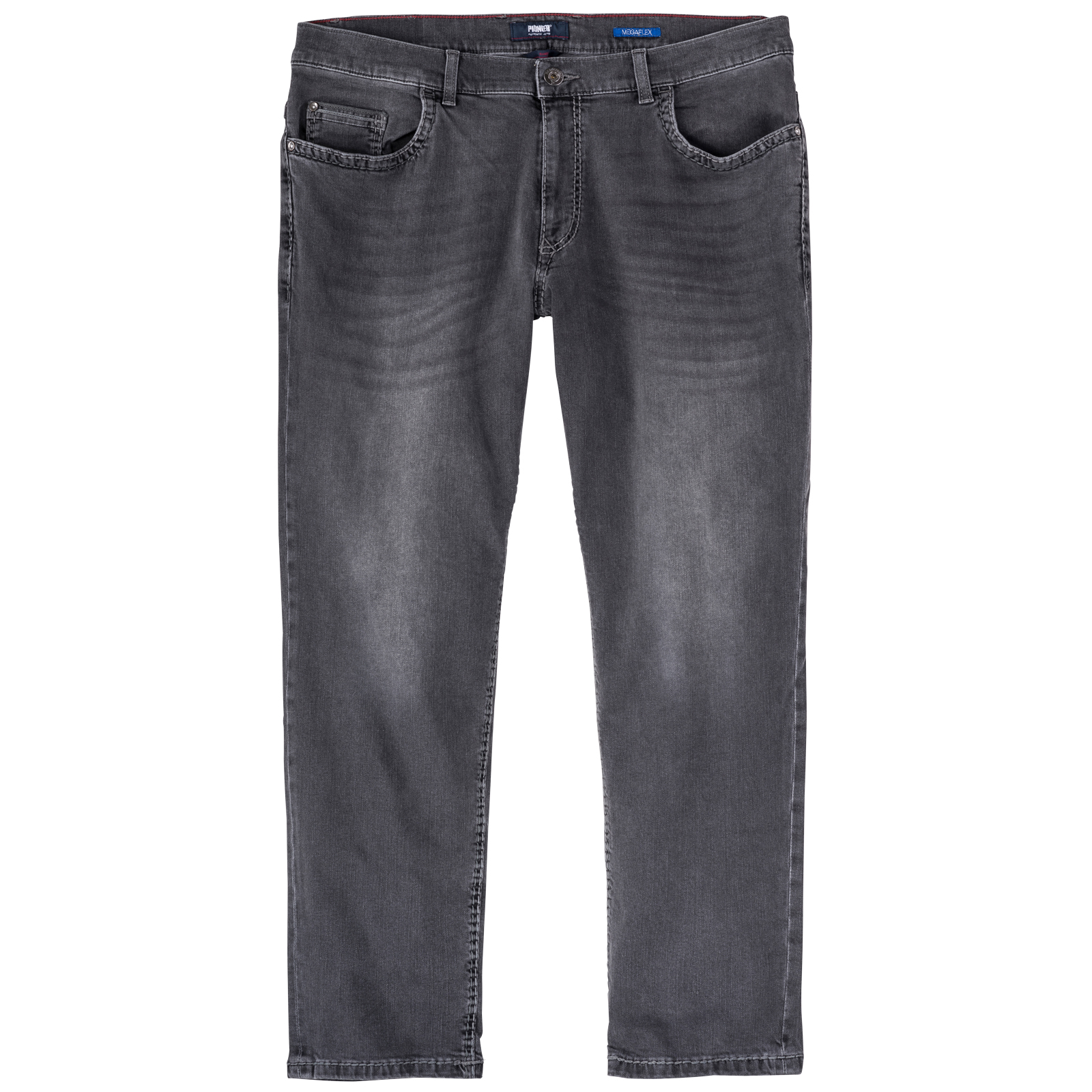 Diese Jeans in großen Inch-Größen von Pioneer überzeugt in angesagter Used-Waschung und mit markanten Nahtabsteppungen (Saddle Stitch), die dem Look eine stilvolle Note verleihen. Gefertigt aus hochwertigem "Megaflex" Baumwoll-Stretch-Denim bietet sie einen angenehmen Tragekomfort. Der klassischer 5-Pocket-Style, eine normale Leibhöhe und ein gerader Beinverlauf zeichnen die Hose aus. Logo-Nieten runden den Denim-Charakter authentisch ab.