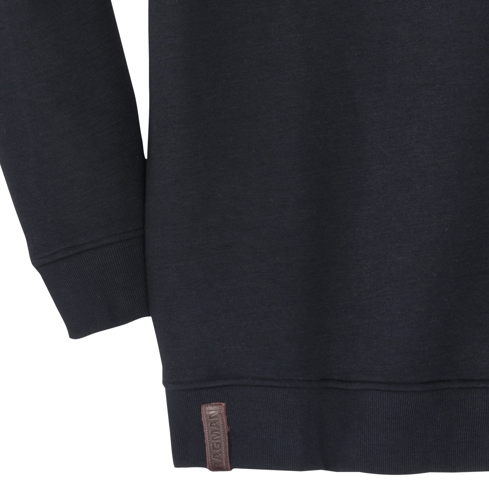 Mit diesem Übergrößen Sweatshirt von Ragman gelingt Relaxen mit Style ganz leicht! Typische Sweater-Merkmale wie elastische Rippbündchen an den Säumen harmonieren perfekt mit dem hohen Schlauchkragen, der mit seiner markanten Kontrastkordel die Blicke auf sich zieht. Rustikale braune Leder-Applikationen an Kordeln und Saum setzen eine weitere modische Note. Für den Wohlfühlfaktor sorgt die weiche, innen flauschig angeraute Sweatware aus Baumwollmix.