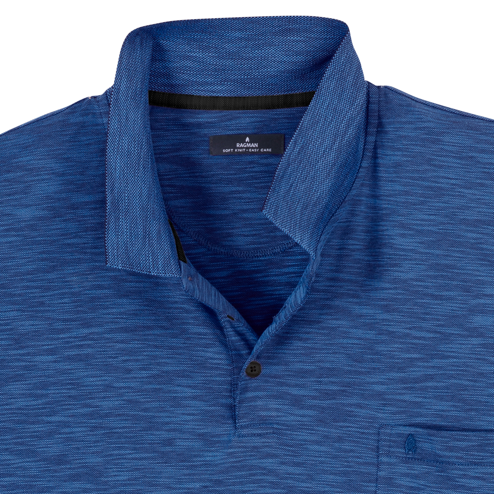 Ragman pflegeleichtes Softknit Poloshirt blau geflammt